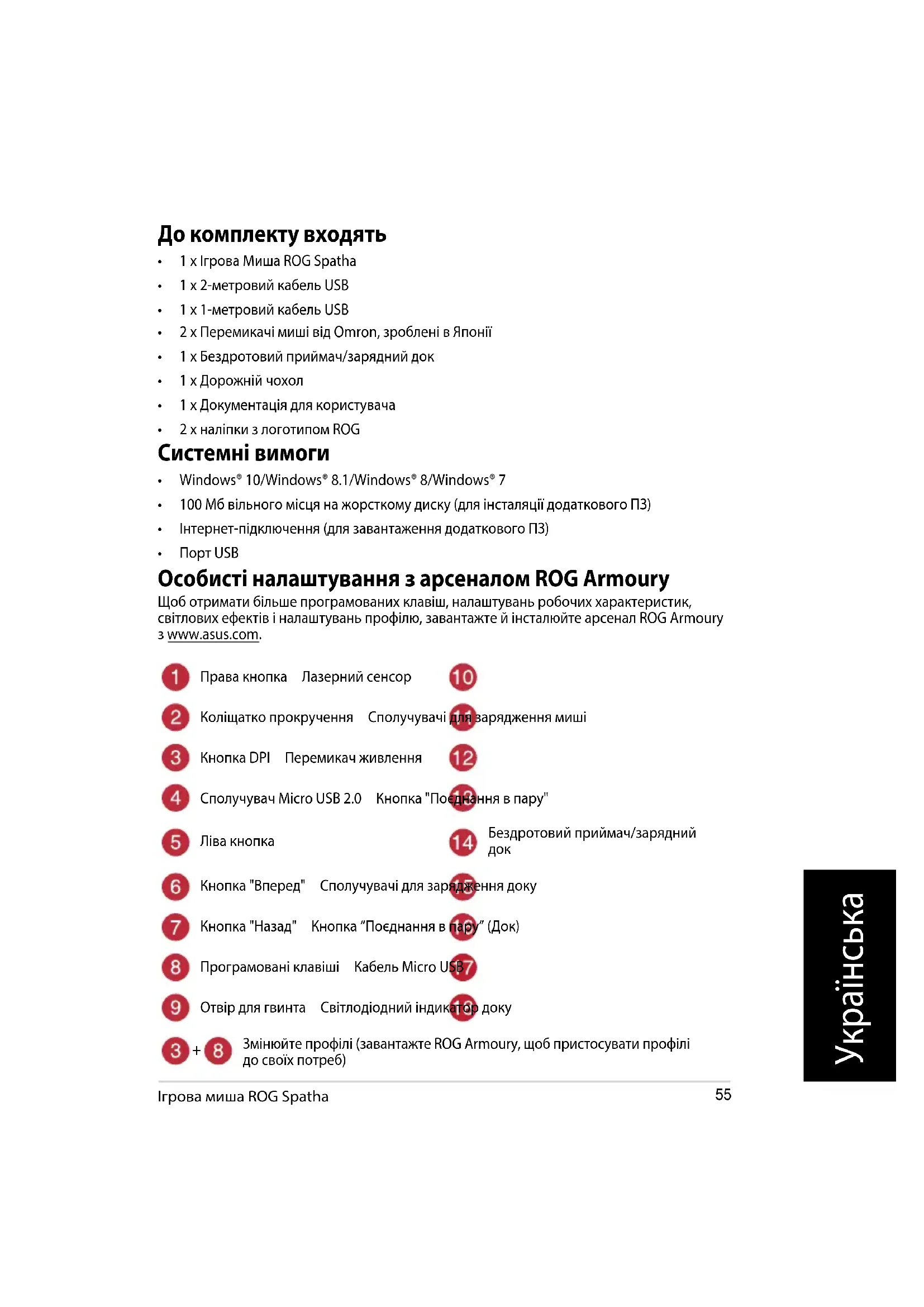 ПОСІБНИК КОРИСТУВАЧА ROG Spatha ASUS