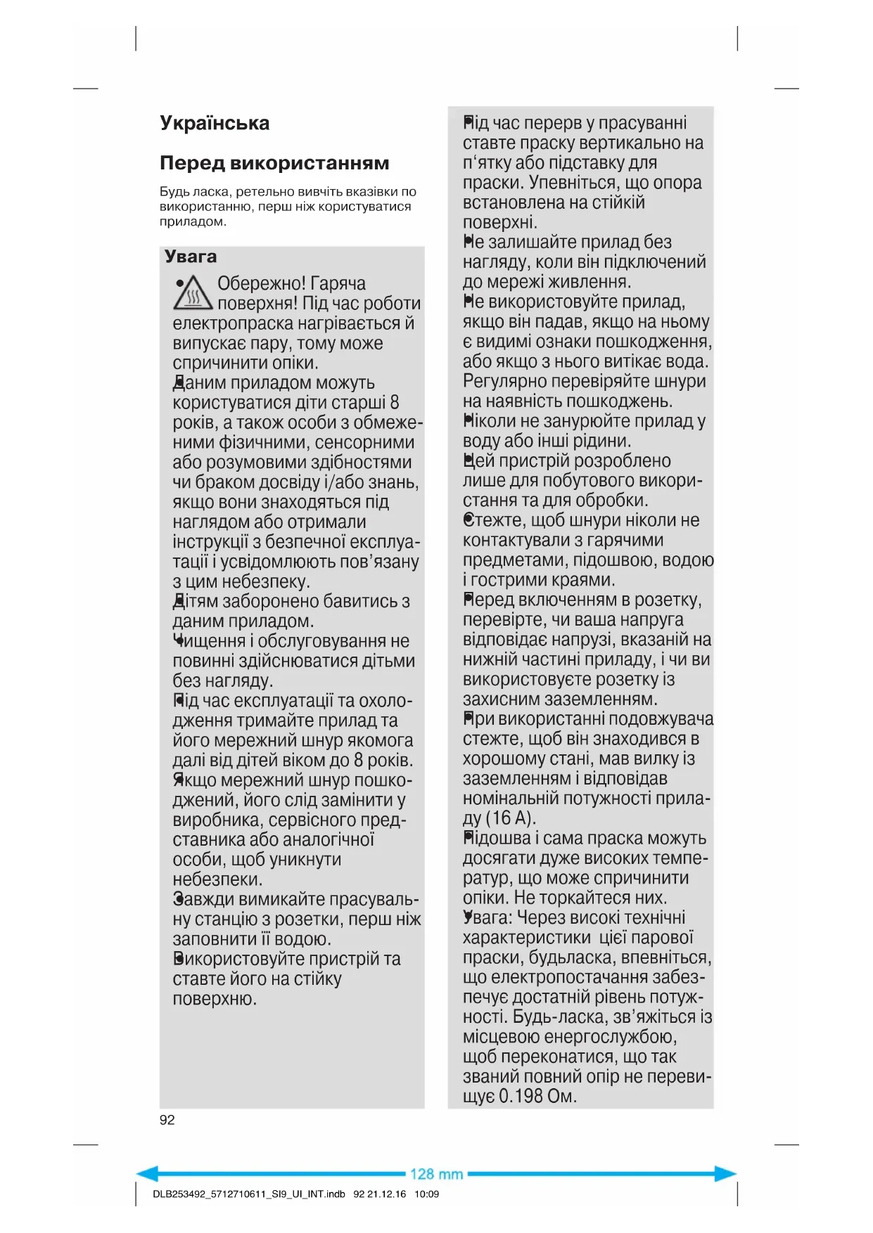 DLB253492_5712710611_SI9_UI_INT.indb 91 21.12.16 10:09ì͇ªÌҸ͇ Перед використанням Будь ласка, ретельно вивчіть вказівки по використанню, перш ніж користуватися