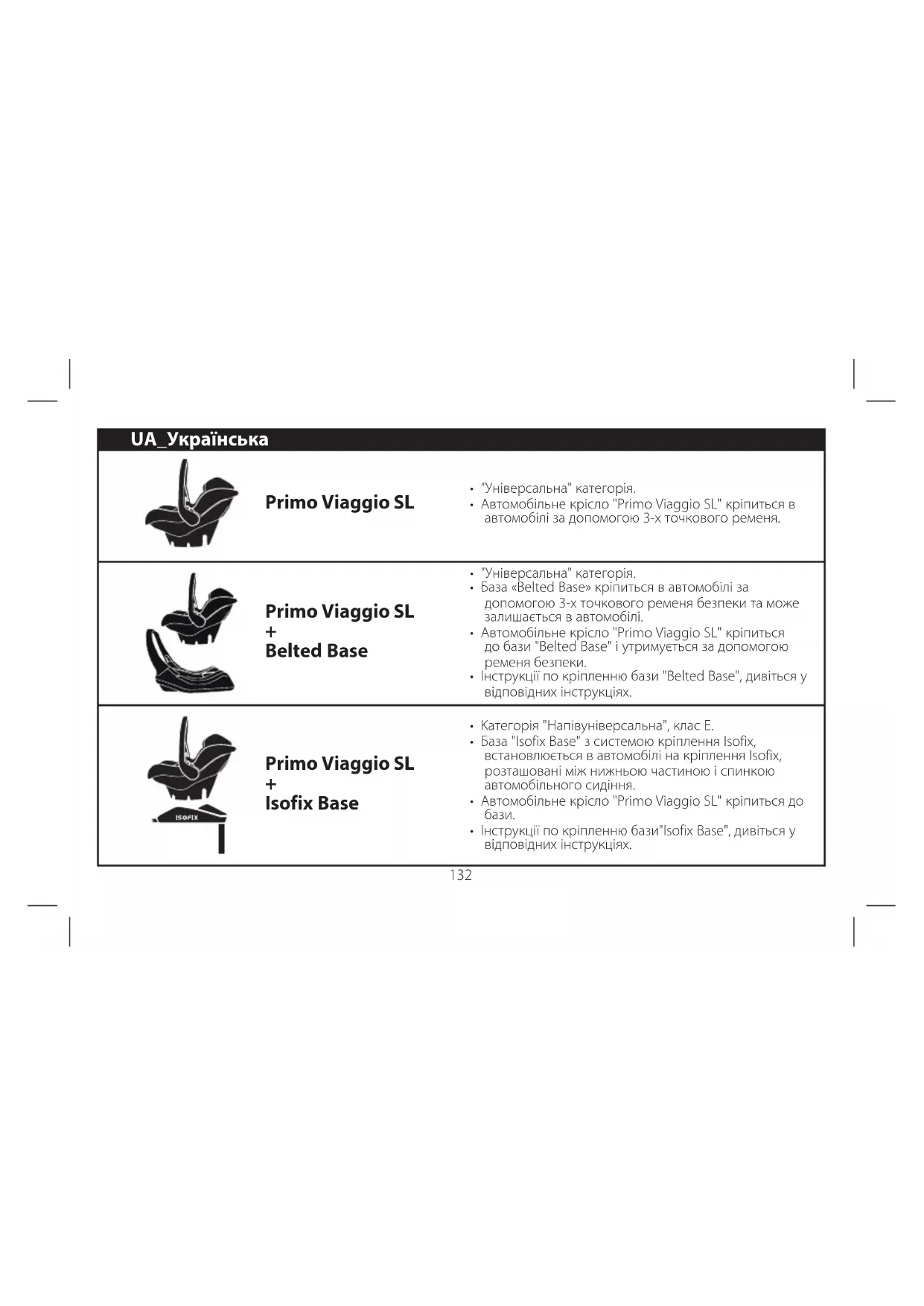 - Інструкції по кріпленню бази"Isofix Base", дивіться у відповідних інструкціях. UA_Українська133 Дякуємо за вибір продукції Peg- Pérego. Xарактеристики виробу