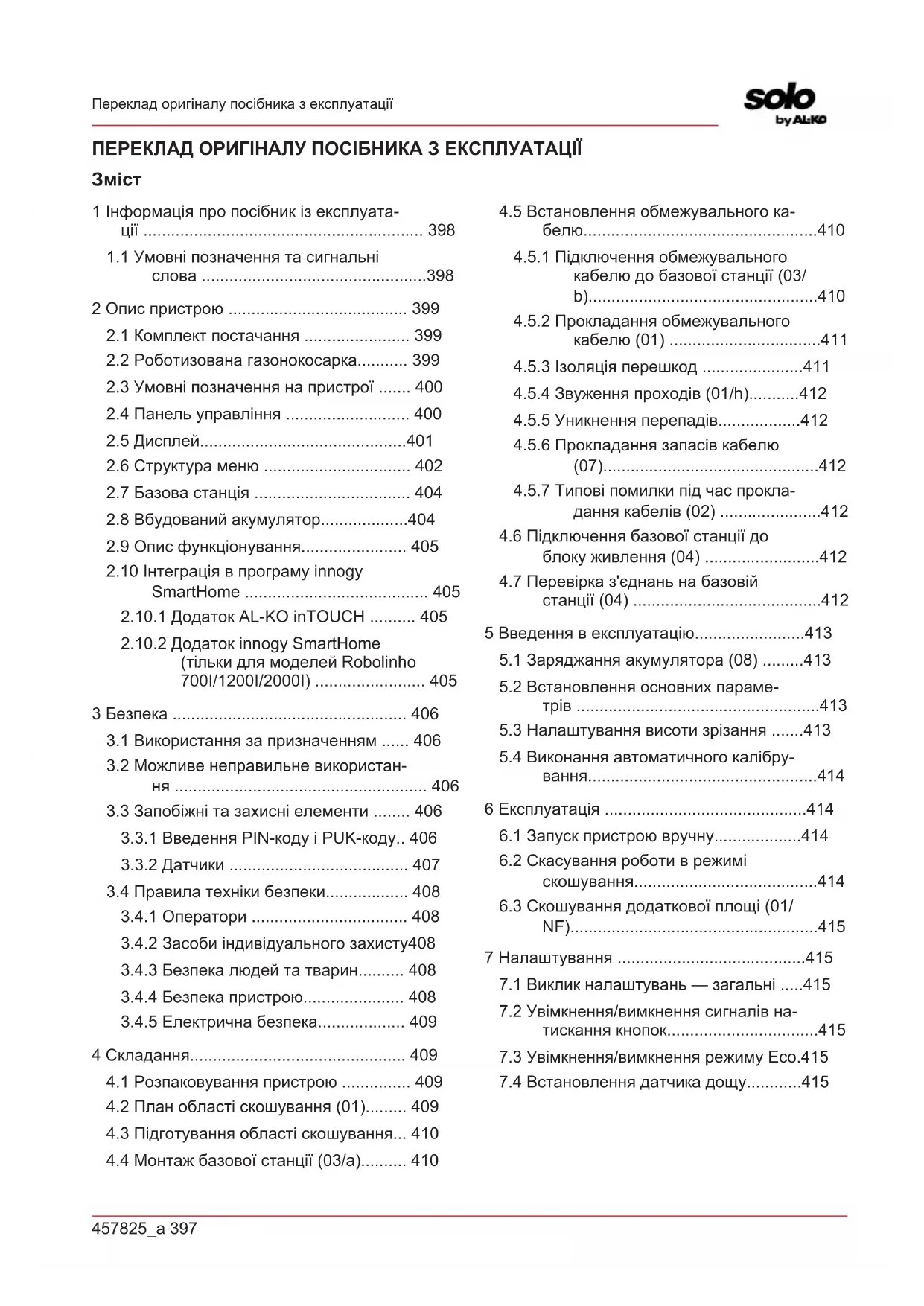 Robolinho 700 Robolinho 1200 Robolinho 2000 Директивы ЕС 2006/42/EС 2014/53/ЕС 2011/65/ЕС Гармонизированные стандарты EN 55014-1:2006+A1:2009+A2:2011 EN 55014-2:2015 EN 61000-6-1:2007 EN 61000-3-2:2014 EN 61000-3-3:2013 EN 60335-1:2012 EN 50636-2-107:2015 Обдах, 01.08.2018 г. Dr. Wolfgang Hergeth Managing Director457825_a 397 Переклад оригіналу посібника з експлуатації ПЕРЕКЛАД ОРИГІНАЛУ ПОСІБНИКА З ЕКСПЛУАТАЦІЇ