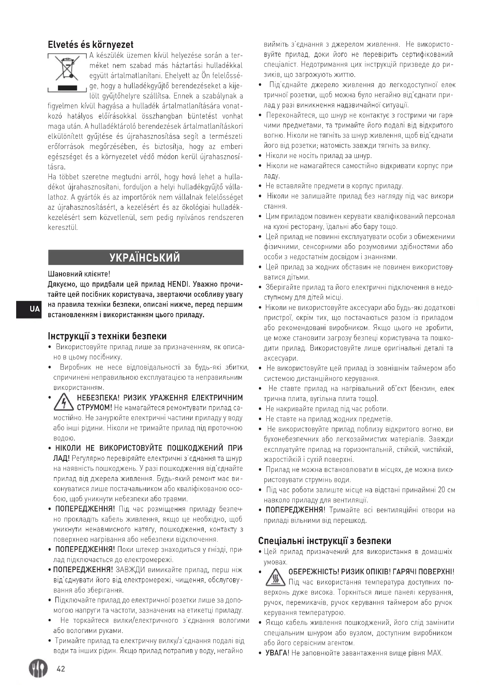 - ПОПЕРЕДЖЕННЯ! Тримайте всі вентиляційні отвори на приладі вільними від перешкод. Спеціальні інструкції з безпеки