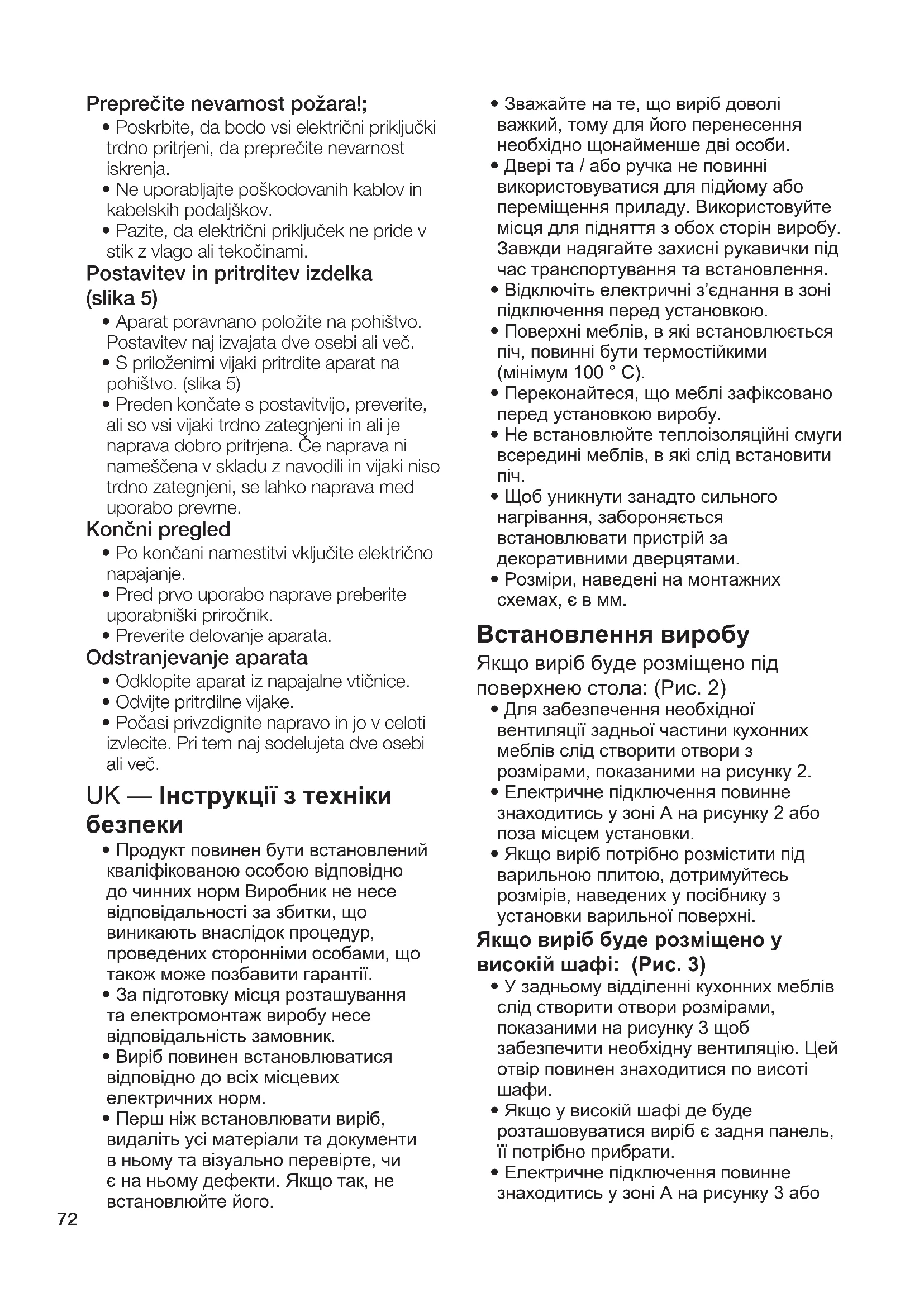 - У задньому відділенні кухонних меблів слід створити отвори розмірами, показаними на рисунку 3 щоб забезпечити необхідну вентиляцію. Цей отвір повинен знаходитися по висоті