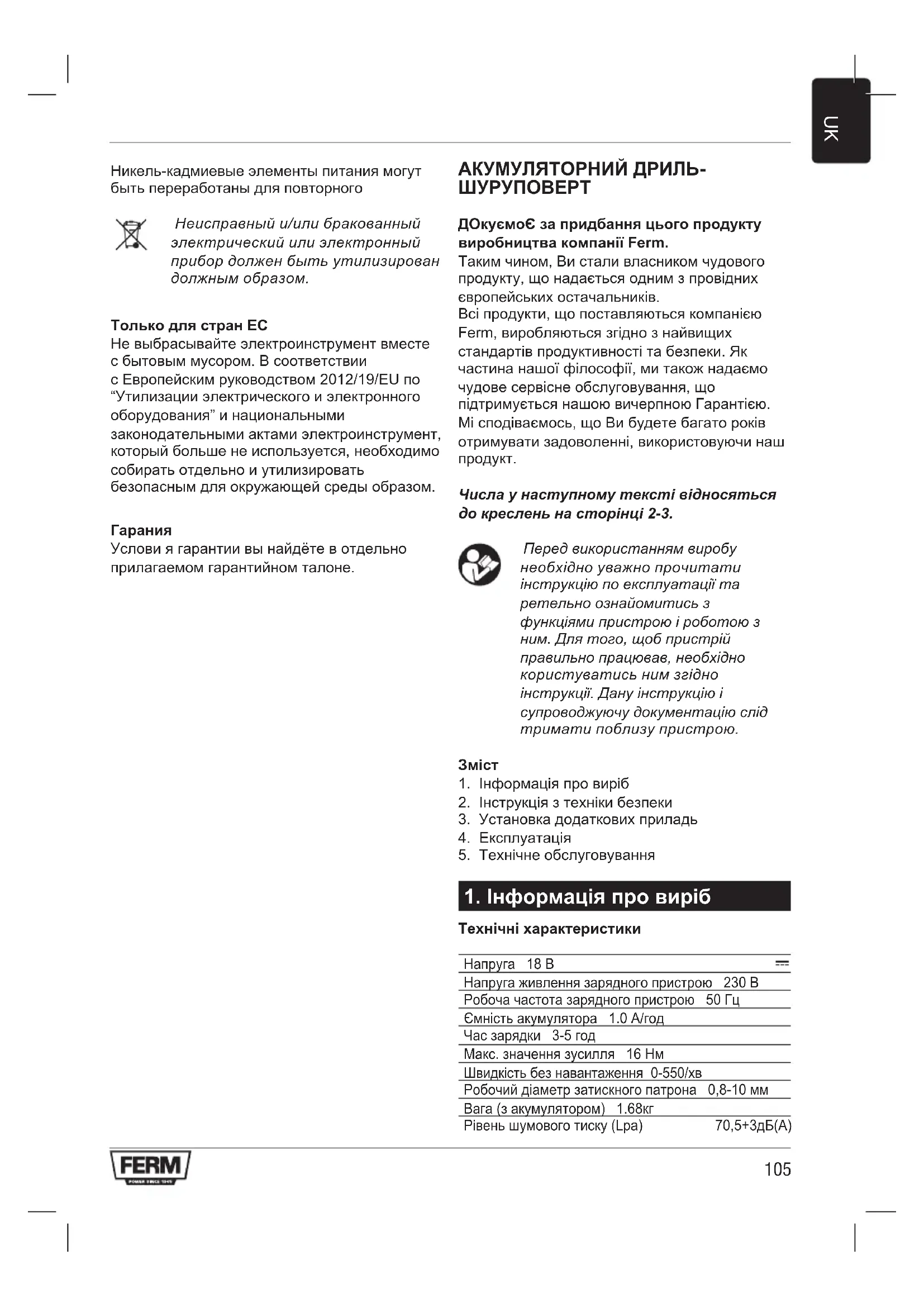 ДOкуємоЄ за придбання цього продукту виробництва компанії Ferm. Таким чином, Ви стали власником чудового продукту, що надається одним з провідних європейських остачальників. Всі продукти, що поставляються компанією Ferm, виробляються згідно з найвищих стандартів продуктивності та безпеки. Як частина нашої філософії, ми також надаємо чудове сервісне обслуговування, що підтримується нашою вичерпною Гарантією. Мі сподіваємось, що Ви будете багато років отримувати задоволенні, використовуючи наш