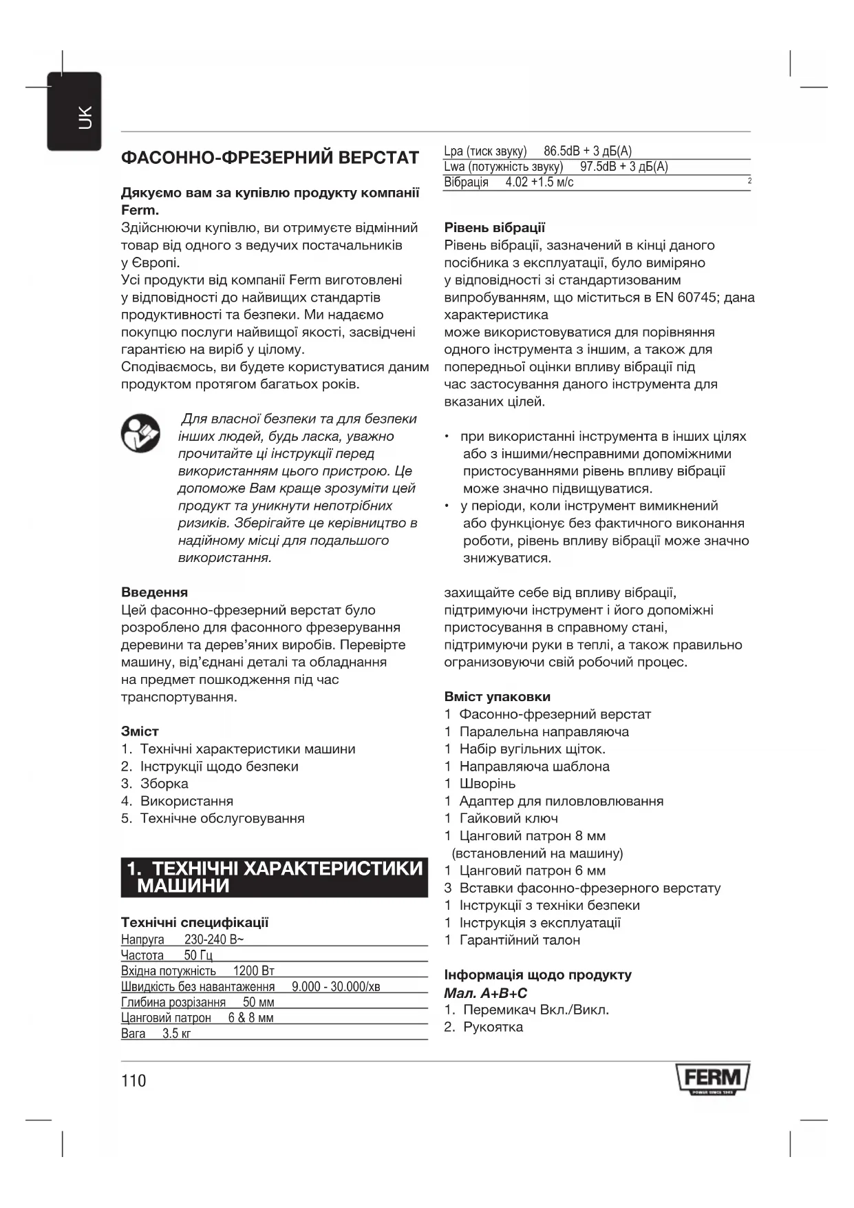 ФАСОННО-ФРЕЗЕРНИЙ ВЕРСТАТ Дякуємо вам за купівлю продукту компанії Ferm. Здійснюючи купівлю, ви отримуєте відмінний товар від одного з ведучих постачальників