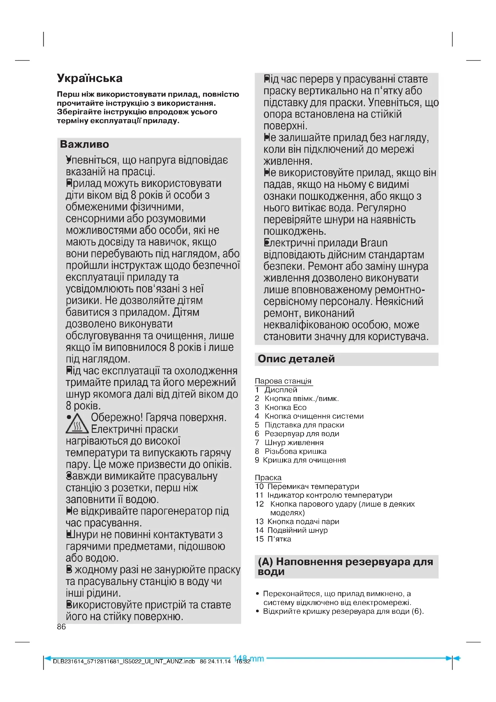 DLB231614_5712811681_IS5022_UI_INT_AUNZ.indb 85 24.11.14 16:32Українська Перш ніж використовувати прилад, повністю прочитайте інструкцію з використання. Зберігайте інструкцію впродовж усього терміну експлуатації приладу.