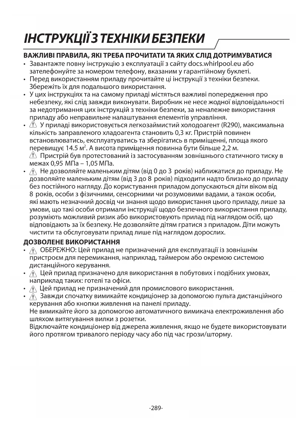 - Повну версію посібника з детальним описом встановлення, технічного обслуговування і ремонту можна завантажити на веб-сайті docs.whirlpool.eu.