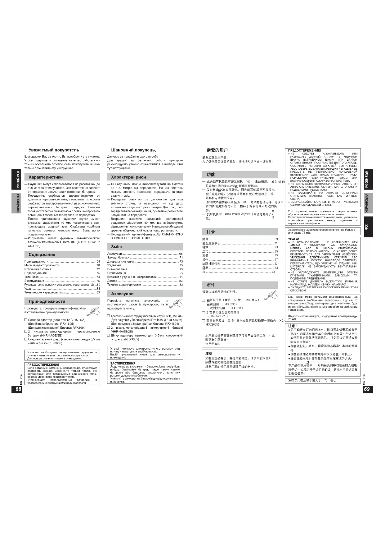 інформація: Будь ласка, уважно прочитайте інструкцію з експлуатації. Установлений виробником згідно з п. 2 ст. 5 федерального закону РФ “ О защите прав потребителей” строк служби даного виробу дорівнює 7 рокам з дати виробництва за умови, що виріб використовується у точній відповідності з цією інструкцією з експлуатації і застосовними технічними стандартами. РУССКИЙ ЯЗЫК УКРАЇНСЬКАRQT9159 RQT9159
