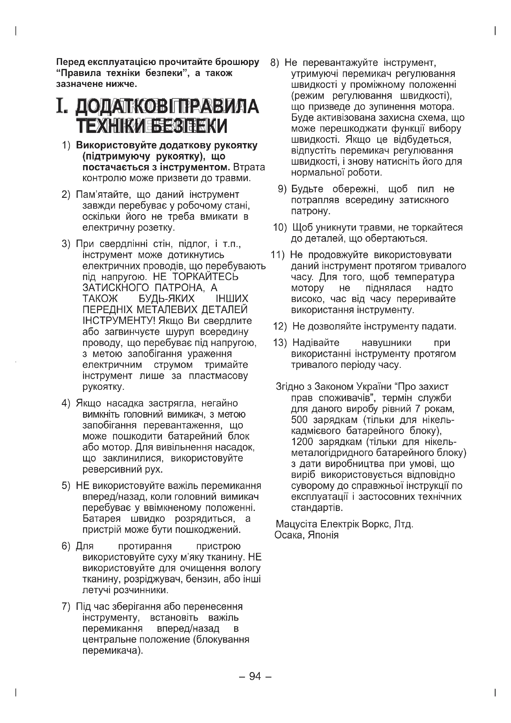Завантажте інструкції для вашого дриль у форматі PDF безкоштовно! Знайдіть свій посібник EY6813 - PANASONIC і поверніть собі контроль над електронним пристроєм. На цій сторінці опубліковані всі документи, необхідні для використання вашого пристрою. EY6813 бренду PANASONIC.