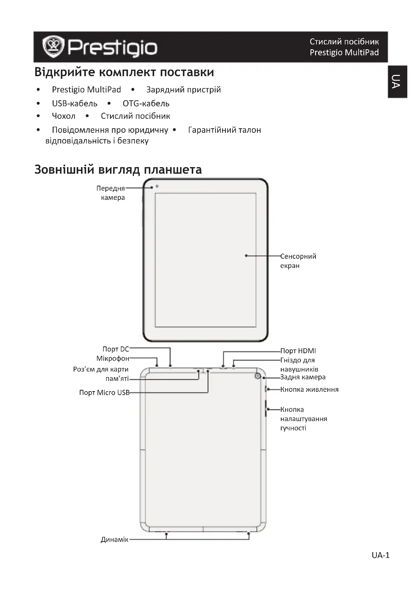 Стислий посібник Prestigio MultiPad Відкрийте комплект поставки