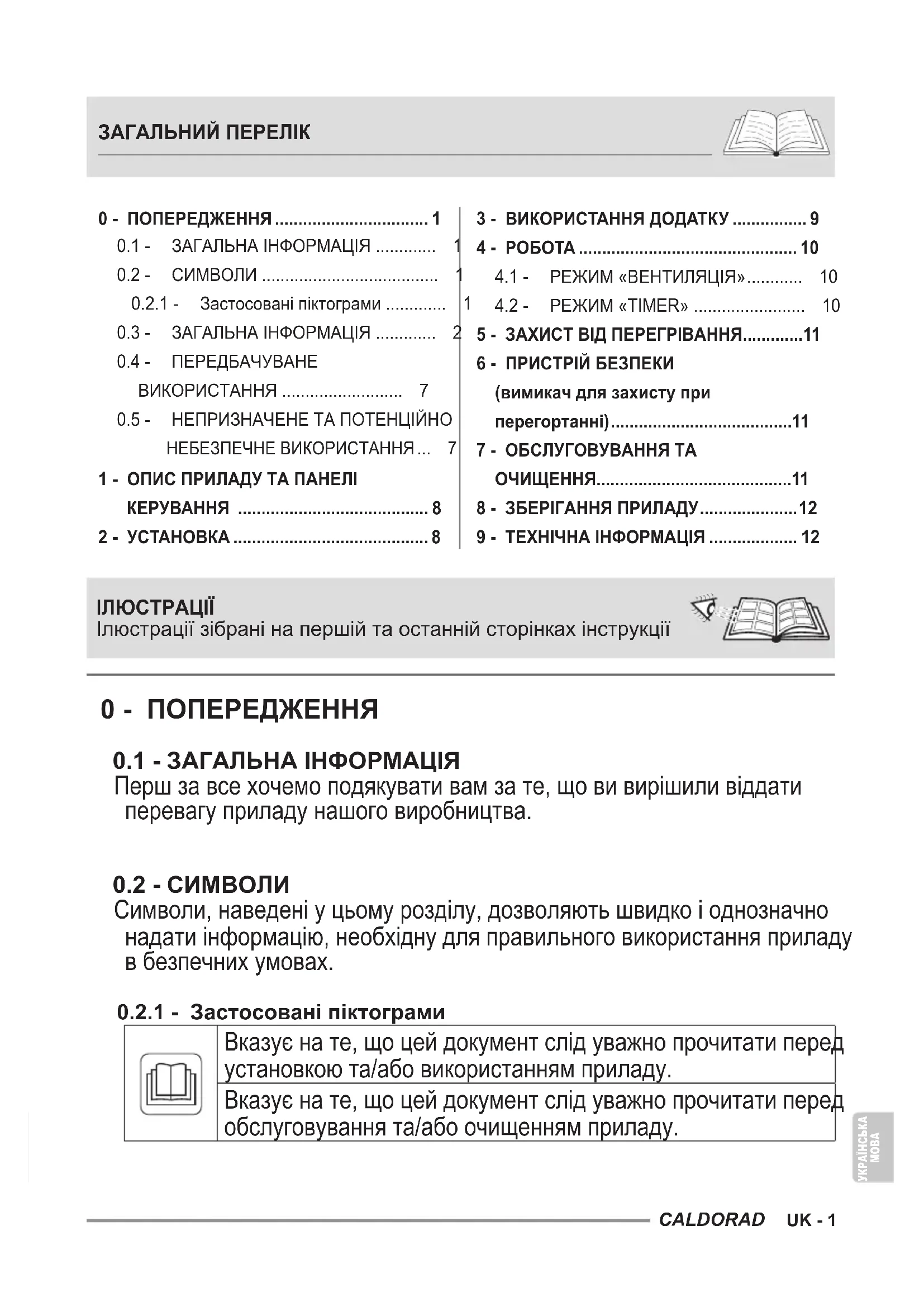 Вказуєнате,щоцейдокументслідуважнопрочитатиперед установкоюта/абовикористаннямприладу. Вказуєнате,щоцейдокументслідуважнопрочитатиперед обслуговуваннята/абоочищеннямприладу. ЗАГАЛЬНИЙ ПЕРЕЛІК