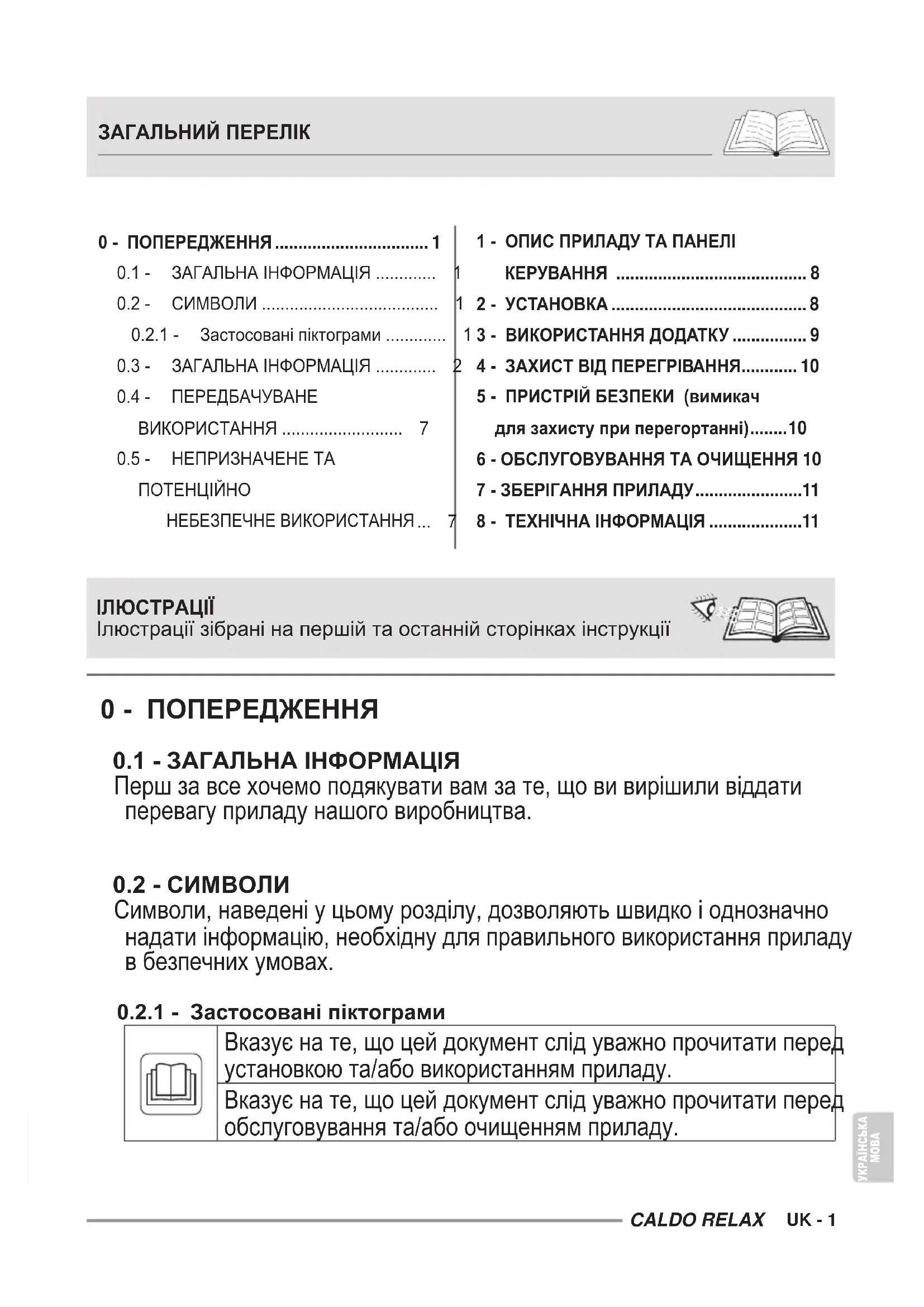 Вказуєнате,щоцейдокументслідуважнопрочитатиперед установкоюта/абовикористаннямприладу. Вказуєнате,щоцейдокументслідуважнопрочитатиперед обслуговуваннята/абоочищеннямприладу. ЗАГАЛЬНИЙ ПЕРЕЛІК