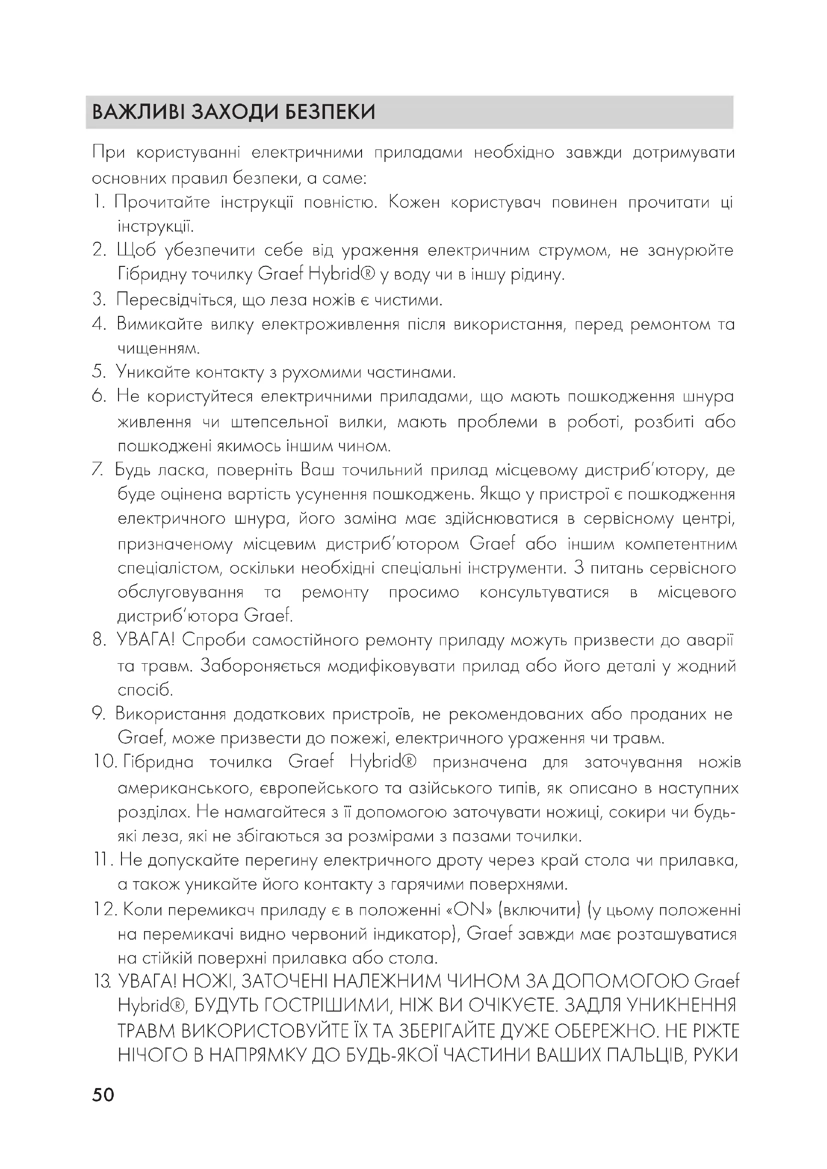 13. УВАГА! НОЖІ, ЗАТОЧЕНІ НАЛЕЖНИМ ЧИНОМ ЗА ДОПОМОГОЮ Graef