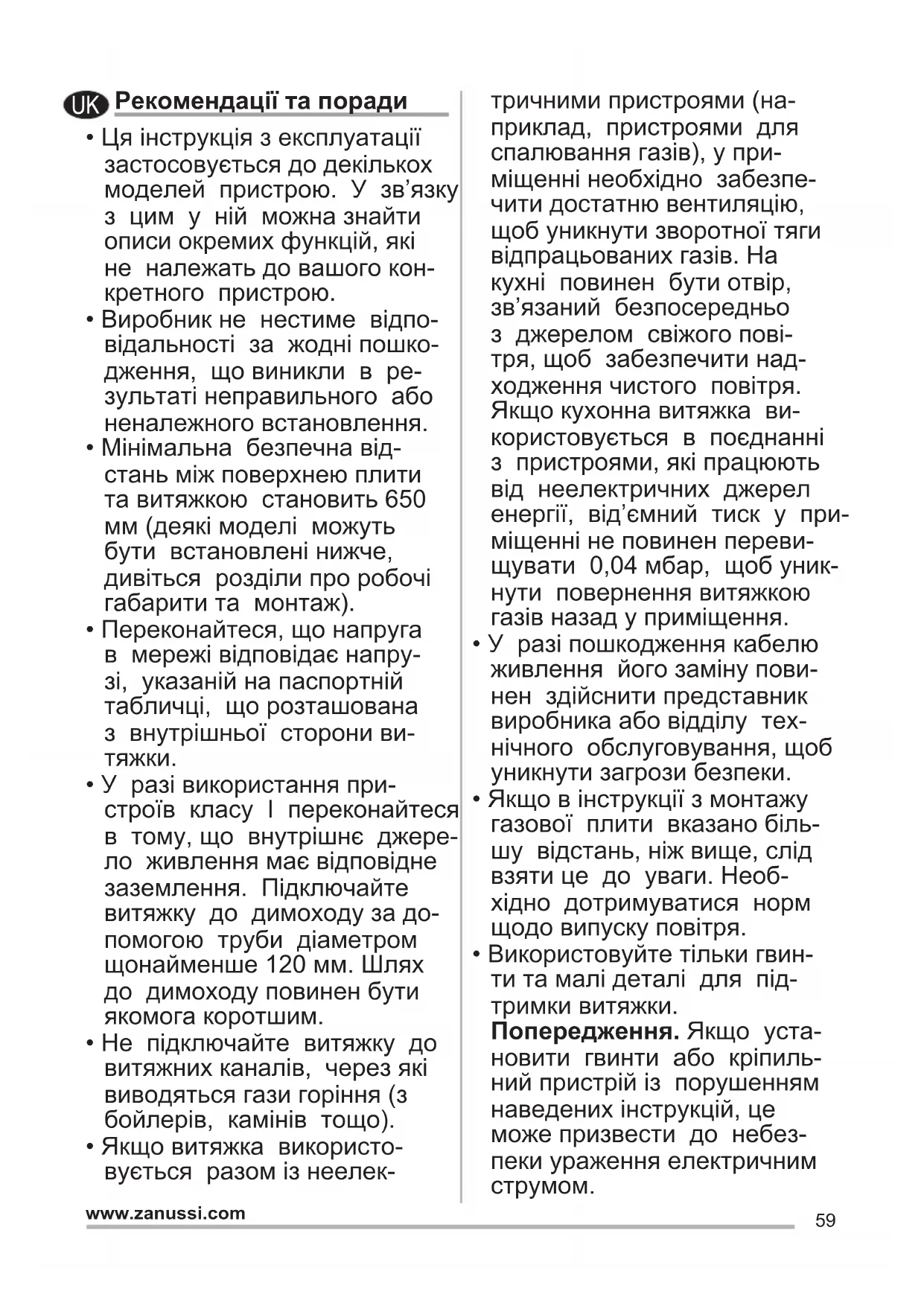 - Витяжку було розроблено винятково для домашнього використання з метою усу- нення запахів на кухні.