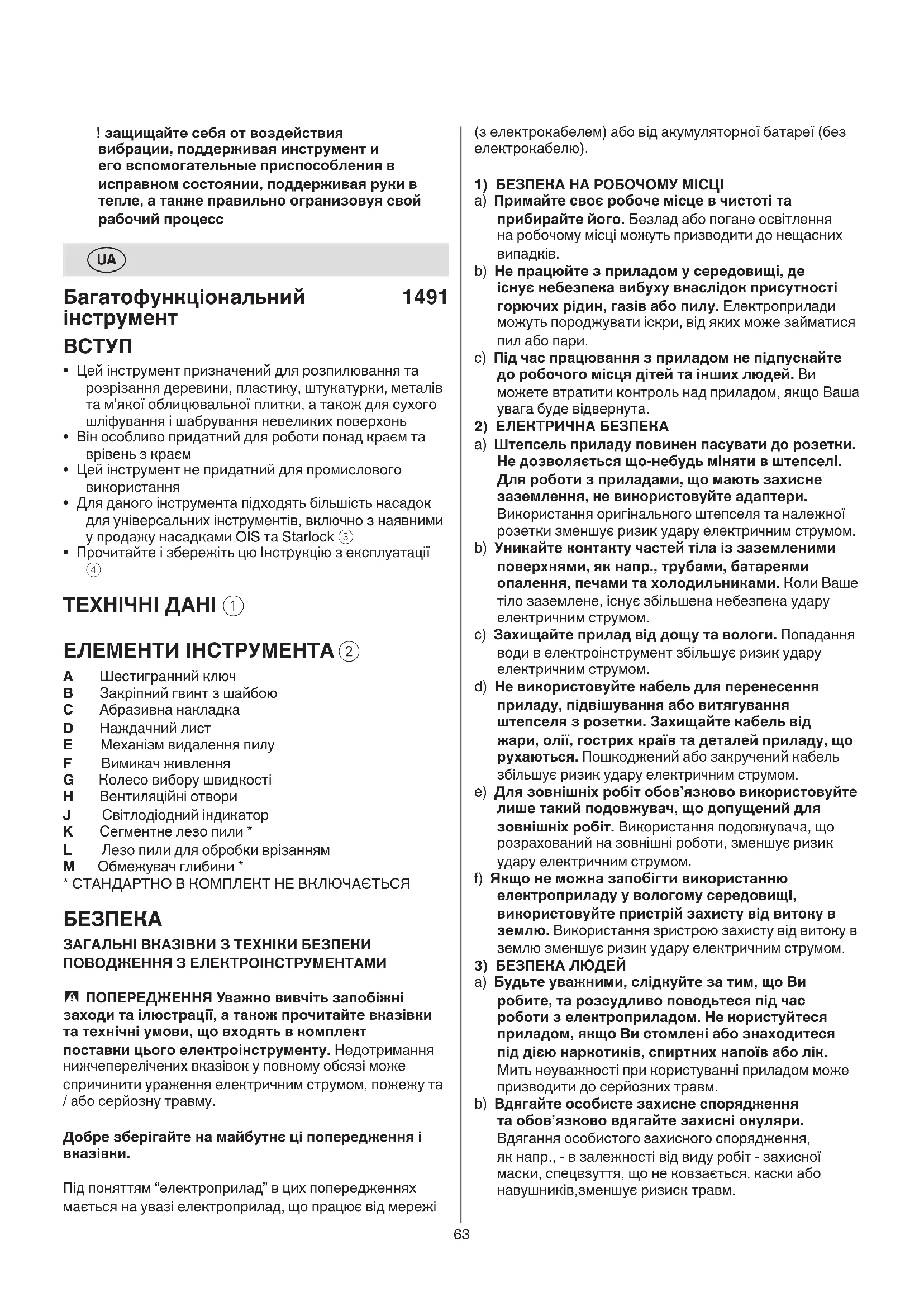 a) Віддавайте свій прилад на ремонт лише кваліфікованим фахівцям та лише з використанням оригінальних запчастин. Це забезпечить безпечність приладу на довгий час. ПРАВИЛА ТЕХНІКИ БЕЗПЕКИ ДЛЯ БАГАТОФУНКЦІОНАЛЬНИХ ІНСТРУМЕНТІВ