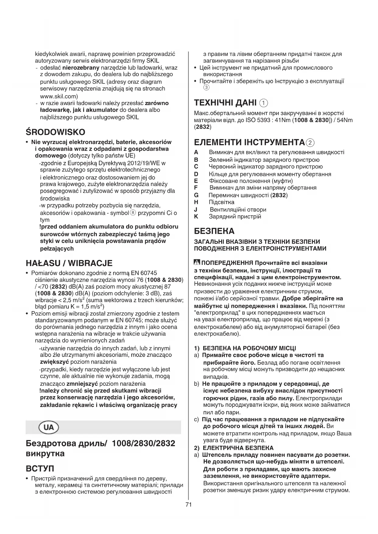 ПОСІБНИК КОРИСТУВАЧА 2830 AJ SKIL