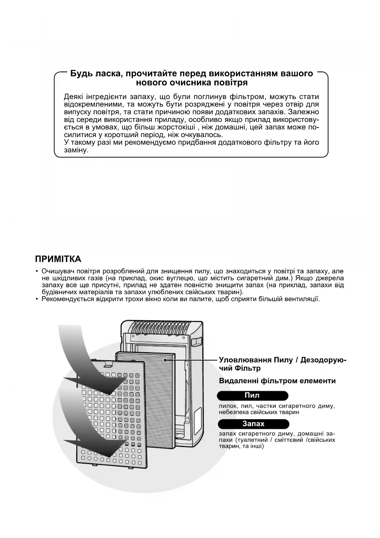 Дякуємо, що придбали Очисник Повітря Корпо- рації SHARP. Будь ласка, ретельно прочитайте це керівництво з експлуатації за для правиль- ного використання інформації. Перед викорис- танням цього приладу, будьте впевнені прочи- тати розділ “Важливі Інструкції з Безпеки.” Після прочитання цього керівництва з експлу- атації, зберігайте його у зручному місці для по- дальших інструкцій