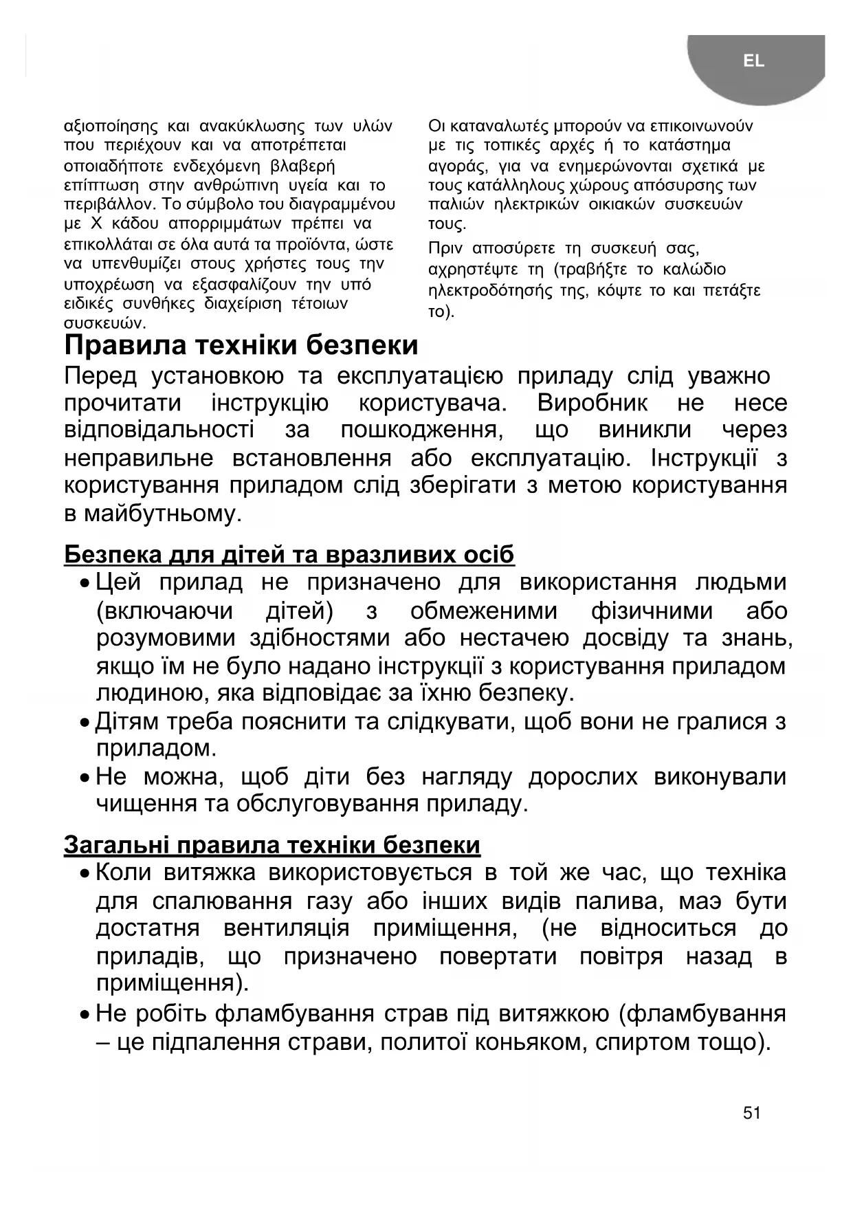 Сведения по технике безопасности Перед установкою та експлуатацією приладу слід уважно прочитати інструкцію користувача. Виробник не несе відповідальності за пошкодження, що виникли через неправильне встановлення або експлуатацію. Інструкції з користування приладом слід зберігати з метою користування в майбутньому. Безпека для дітей та вразливих осіб