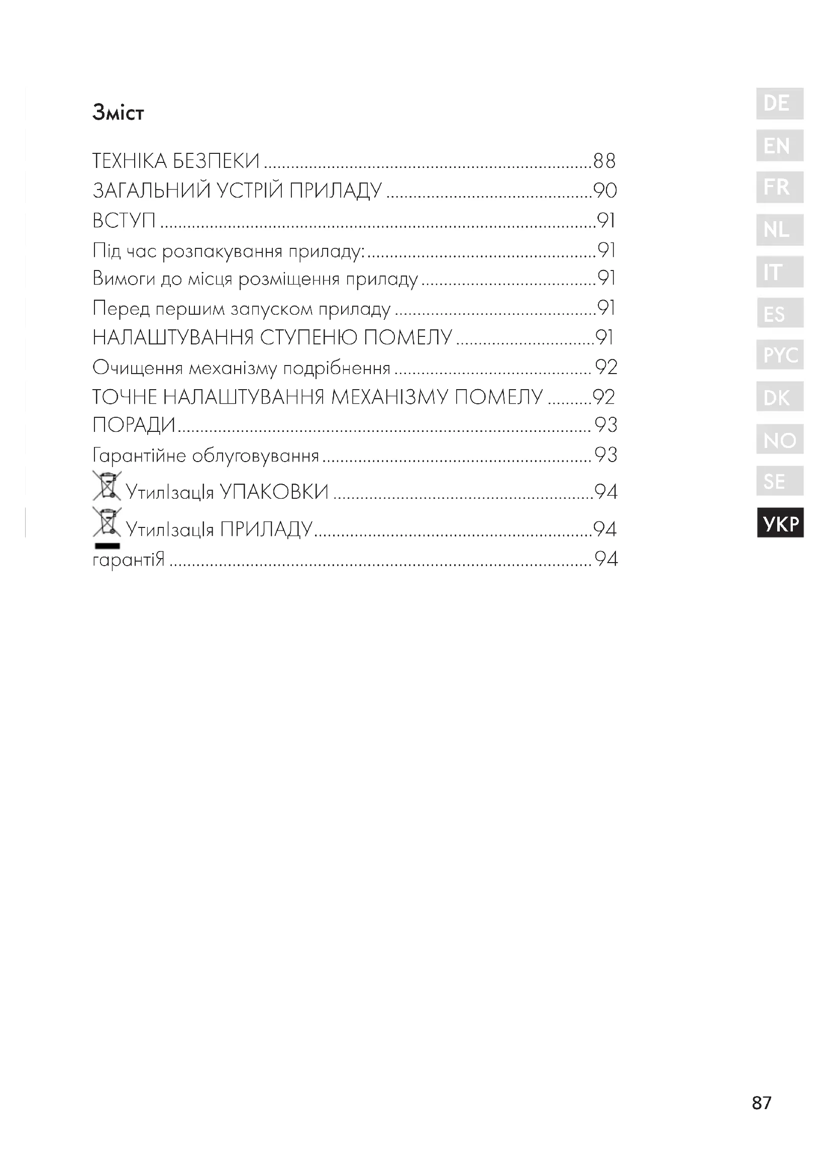- УтилІзацІя ПРИЛАДУ p. 94