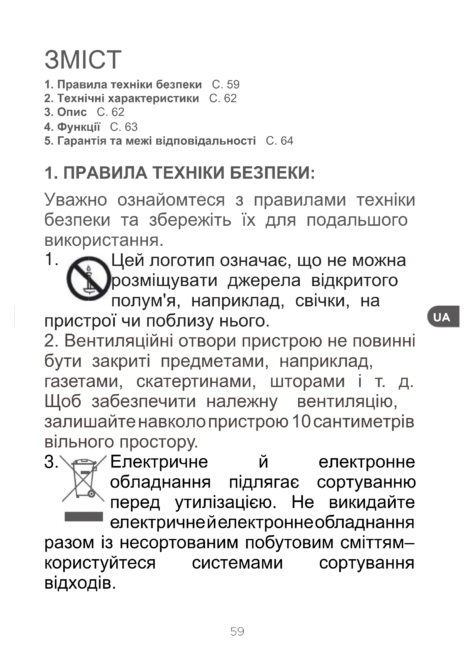 Цей логотип означає, що не можна розміщувати джерела відкритого полум'я, наприклад, свічки, на пристрої чи поблизу нього.