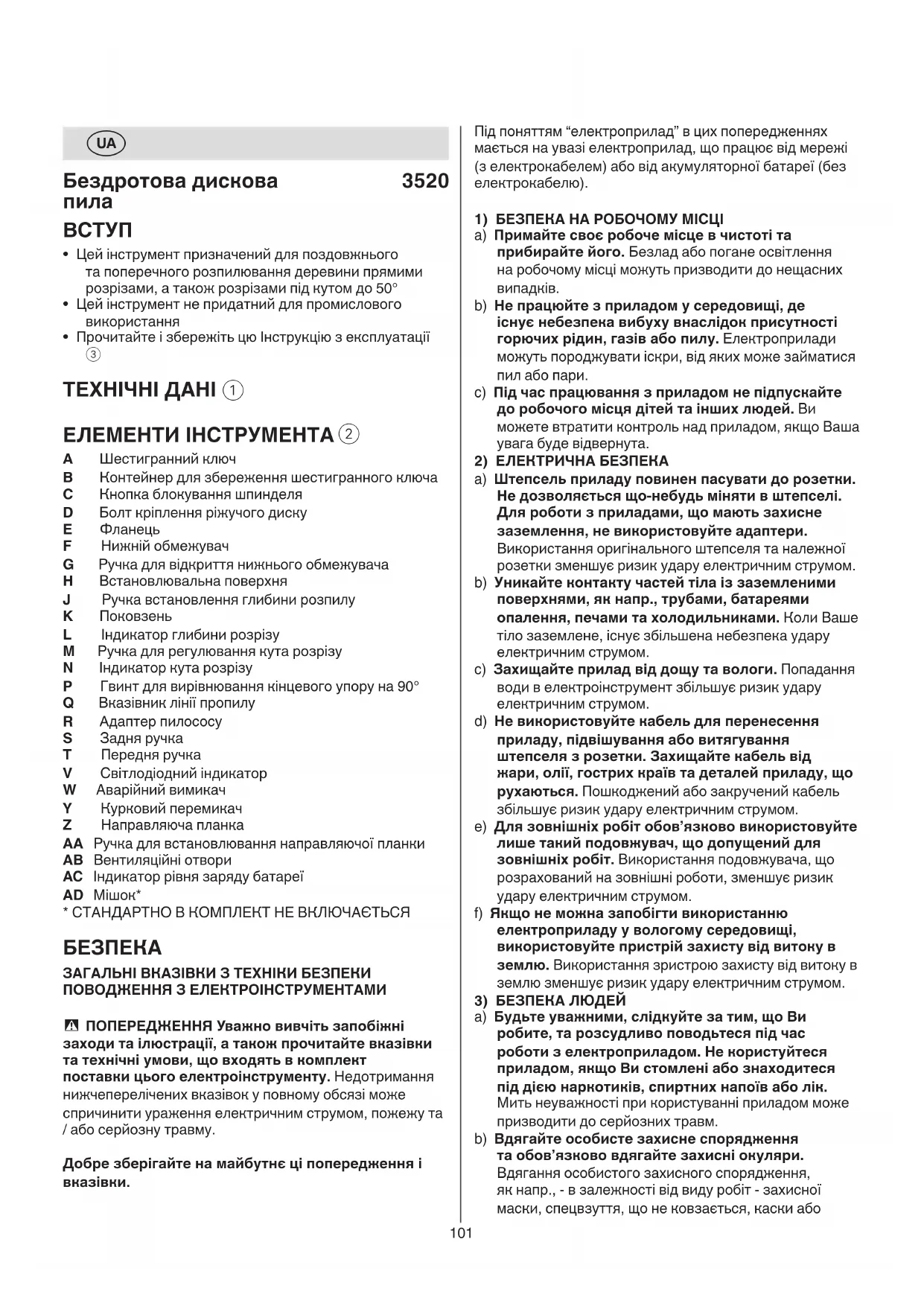 ПОСІБНИК КОРИСТУВАЧА 3520 AA SKIL