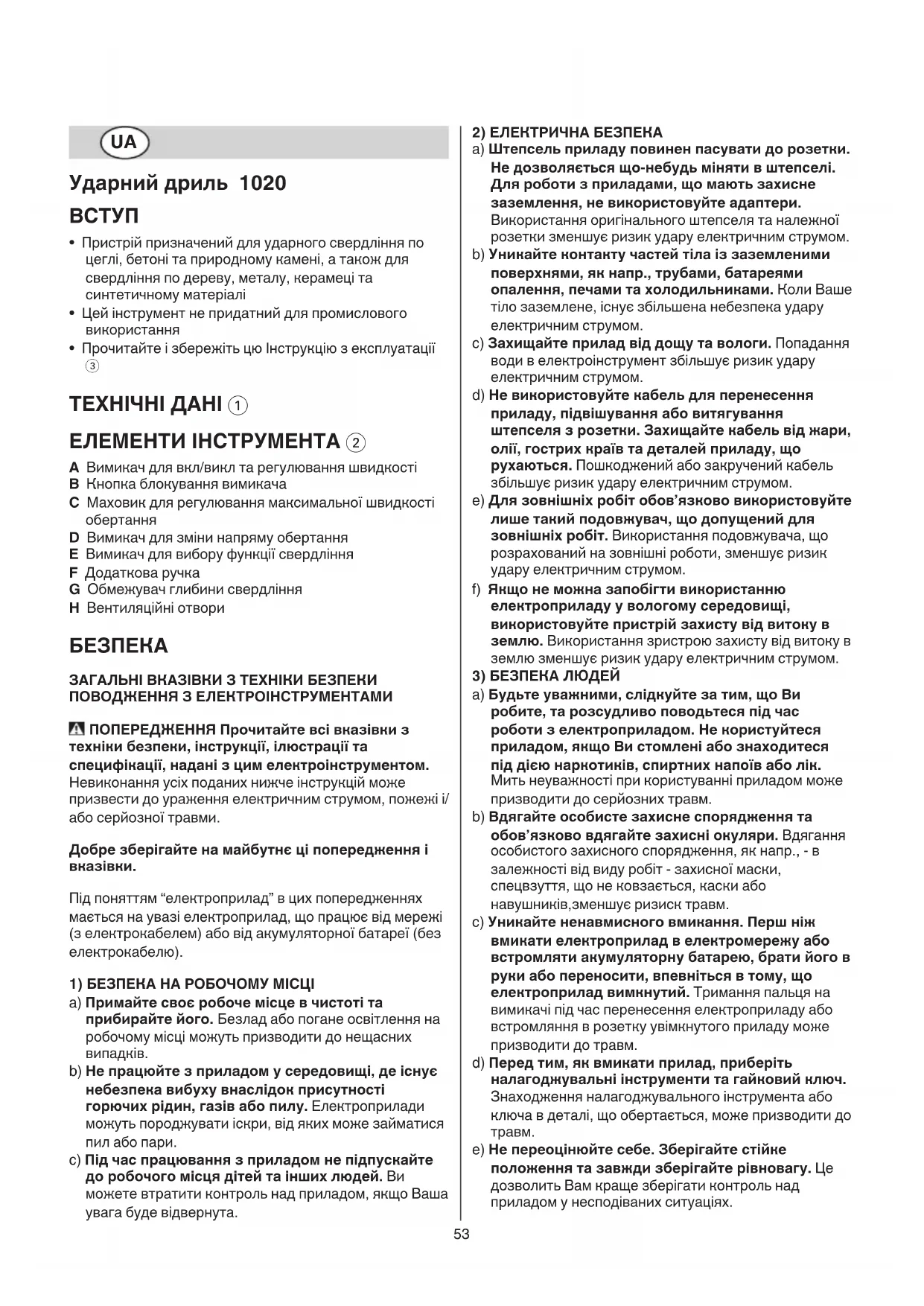 ПОСІБНИК КОРИСТУВАЧА 1020 AA SKIL