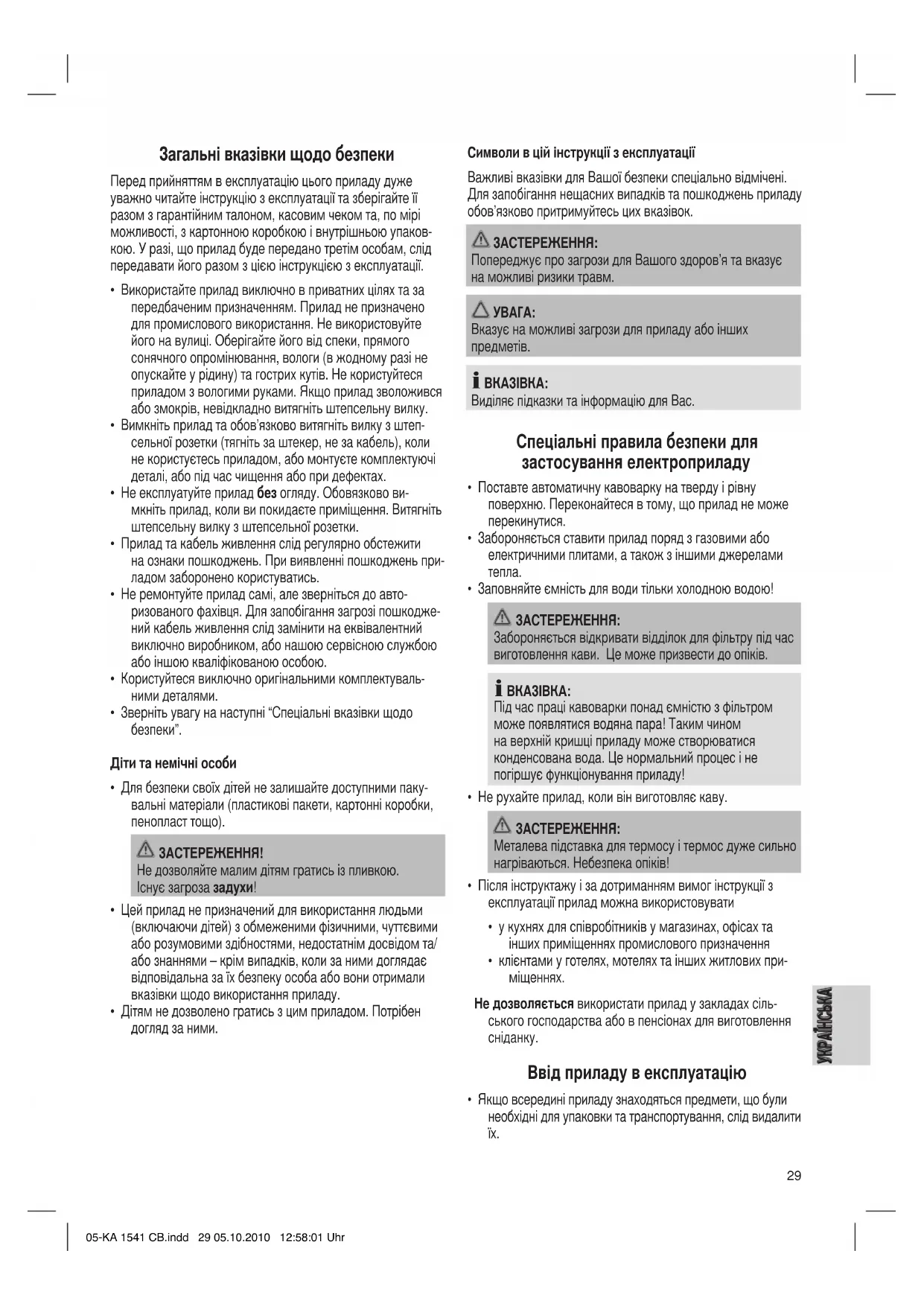 - Термос і відділок для фільтрів слід очищувати як звичай- ний посуд миючими засобами. При необхідності можна використовувати м‘яку щітку. 05-KA 1541 CB.indd 30 05.10.2010 12:58:01 Uhr31
