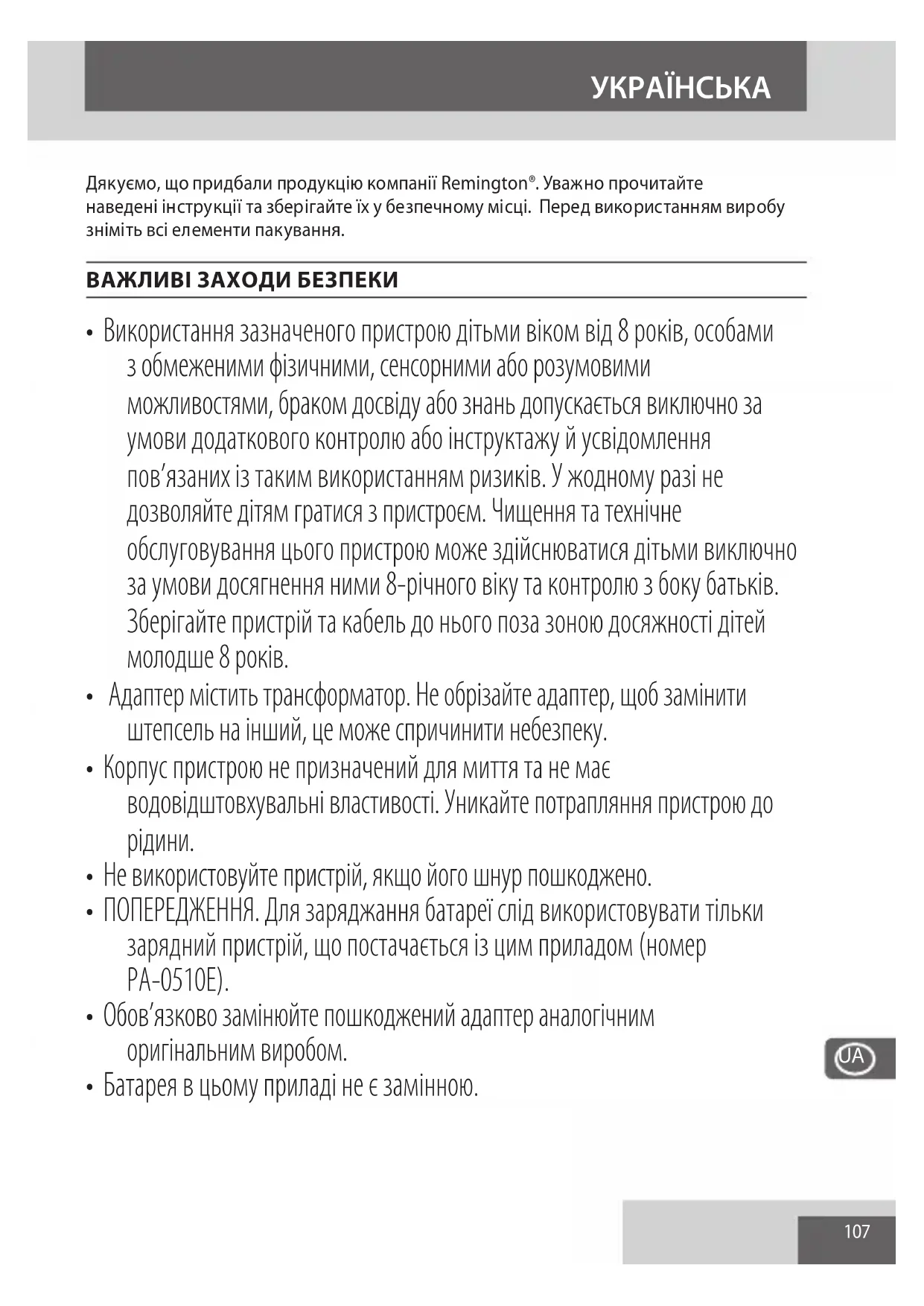 ПОСІБНИК КОРИСТУВАЧА Style Series B5 REMINGTON