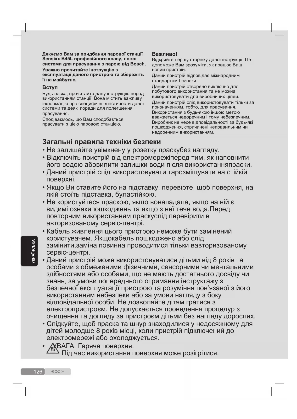 - УВАГА. Гаряча поверхня. Під час використання поверхня може розігрітися.127 B O S C H Описпристрою