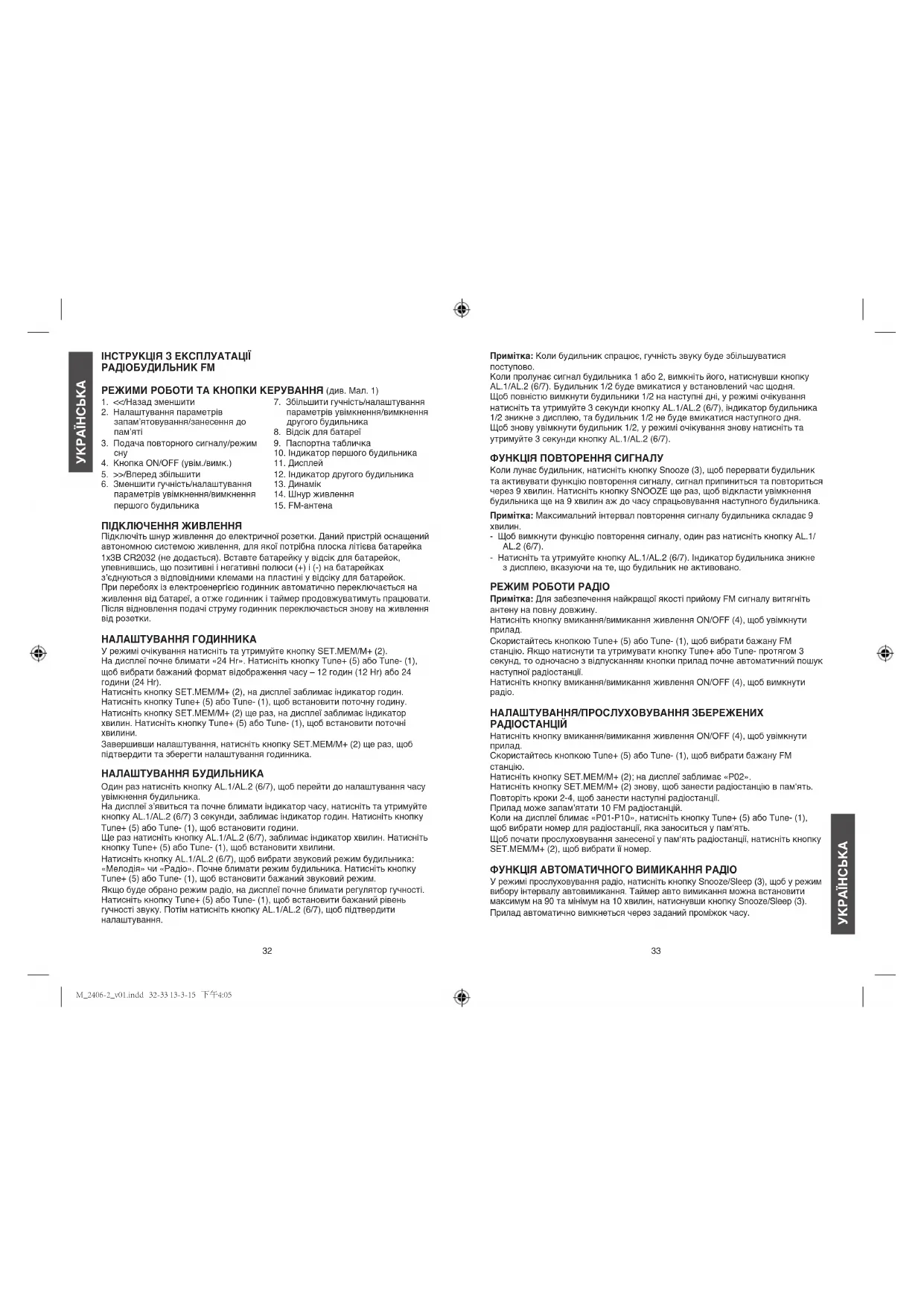 RAdio RéVEil FM MOdE d’EMPLOI радіобУдиЛьниК FM інсТрУКЦіЯ з ЕКсПЛУаТаЦіЇ RAdio REloj FM MANUAl dE iNSTRUCCioNES