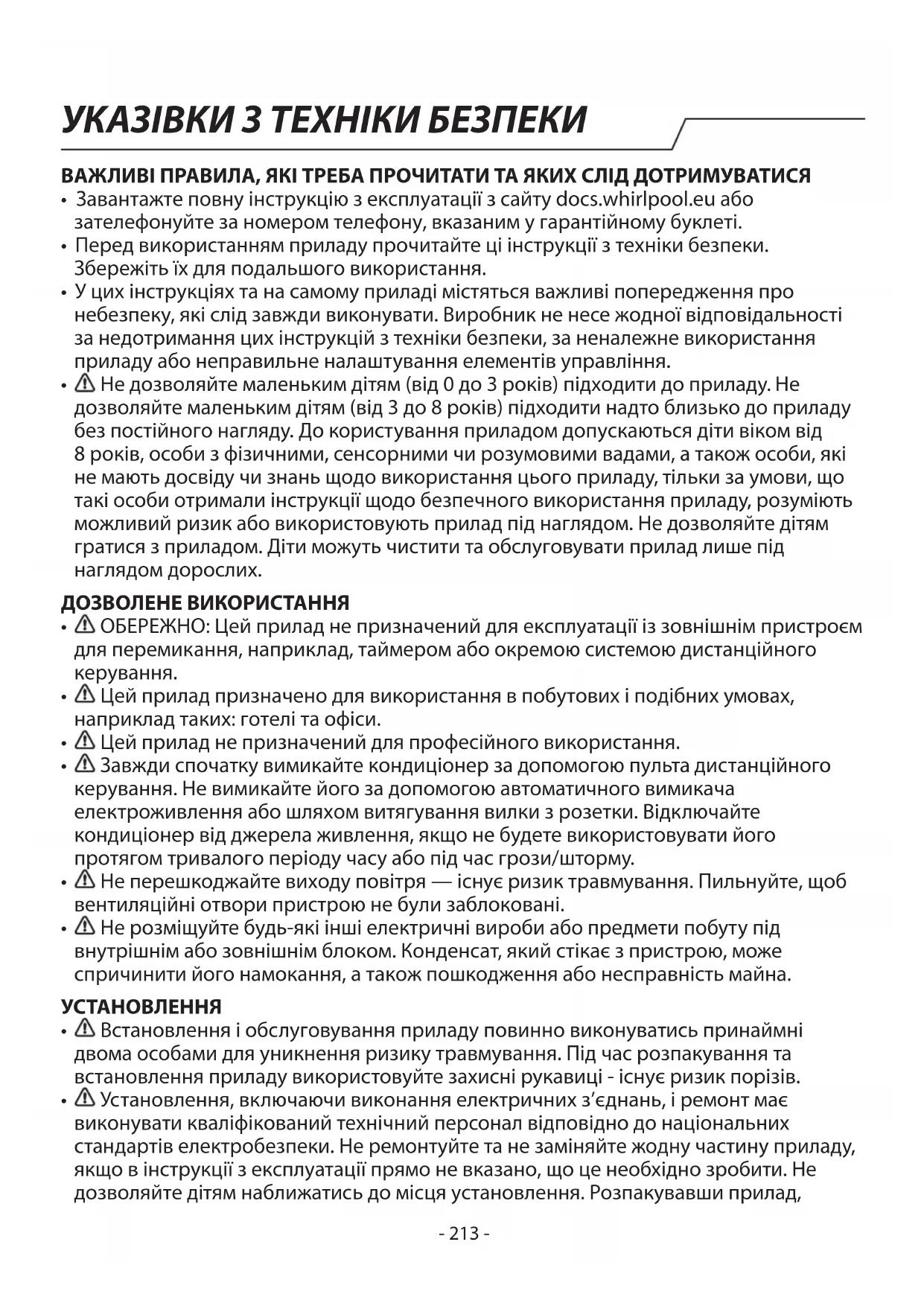- Завантажте повну інструкцію з експлуатації з сайту docs.whirlpool.eu або зателефонуйте за номером телефону, вказаним у гарантійному буклеті.