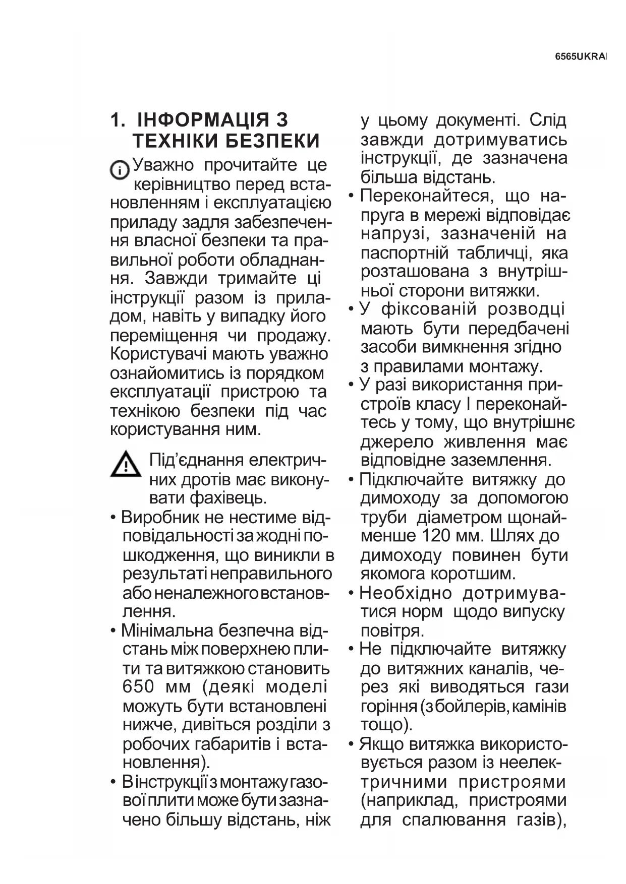 - У разі використання ви- тяжки одночасно з прила- дами, які працюють на газі або інших видах палива, необхідно передбачити належну вентиляцію при- міщення (не застосовуєть- ся до приладів, які спрямо- вують потік повітря тільки назад у приміщення).