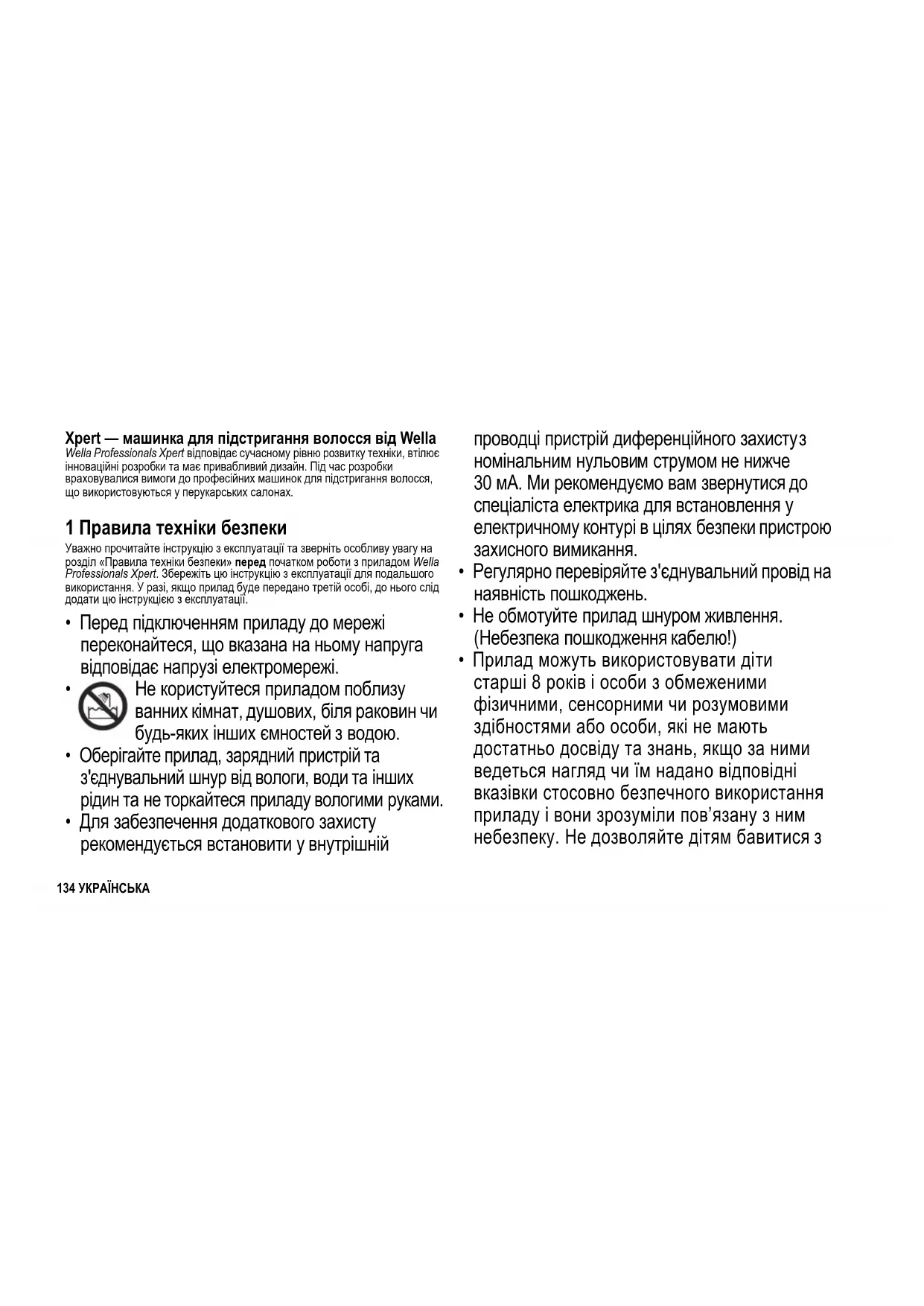 U24_Wella_Xpert.book Seite 134 Mittwoch, 29. Oktober 2014 4:07 04135УКРАЇНСЬКА приладом. Не дозволяйте дітям чистити та обслуговувати прилад, якщо за ними не ведеться нагляд.