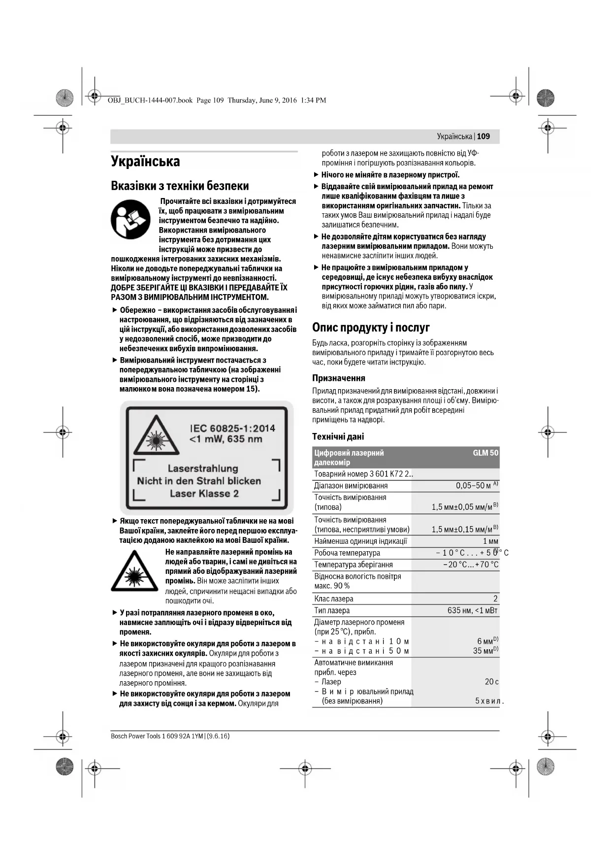 ПОСІБНИК КОРИСТУВАЧА GLM 50 Professional BOSCH