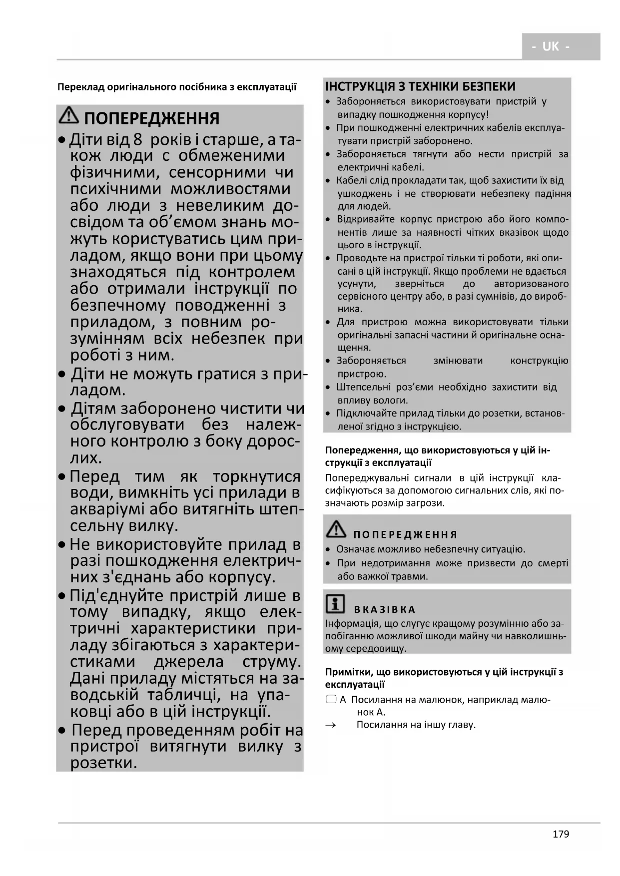 - UK - Переклад оригінального посібника з експлуатації ПОПЕРЕДЖЕННЯ