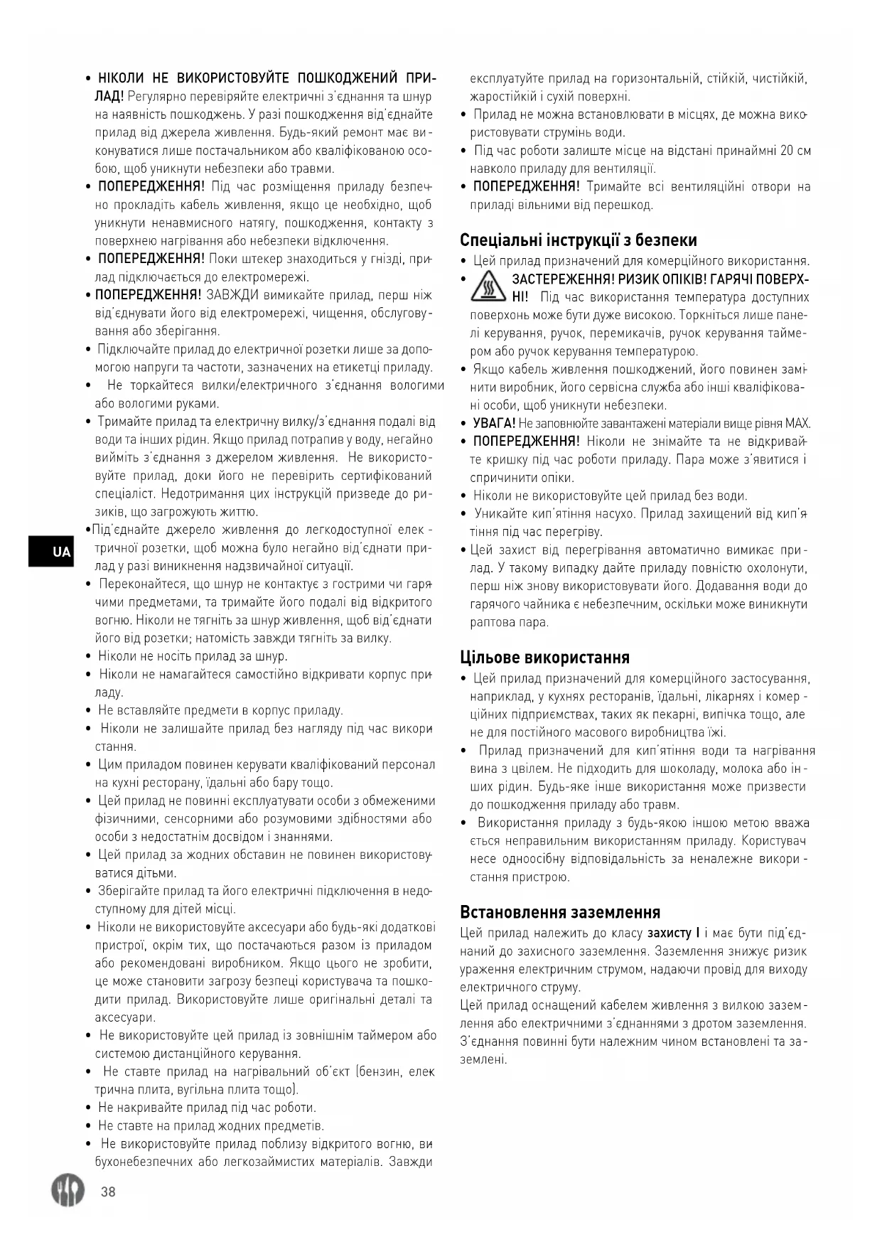 - Цим приладом повинен керувати кваліфікований персонал на кухні ресторану, їдальні або бару тощо.