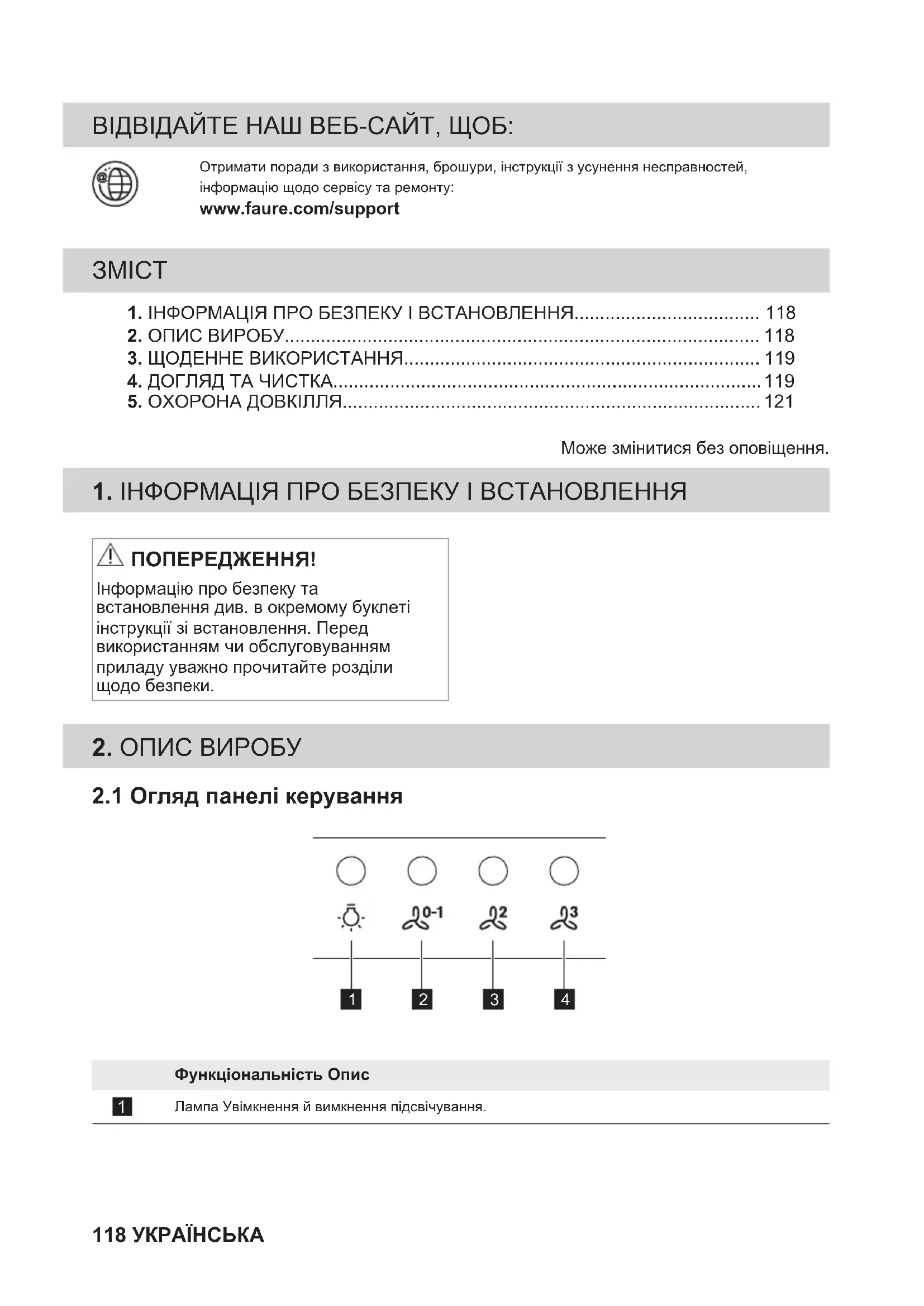1. ІНФОРМАЦІЯ ПРО БЕЗПЕКУ І ВСТАНОВЛЕННЯ.................................... 118