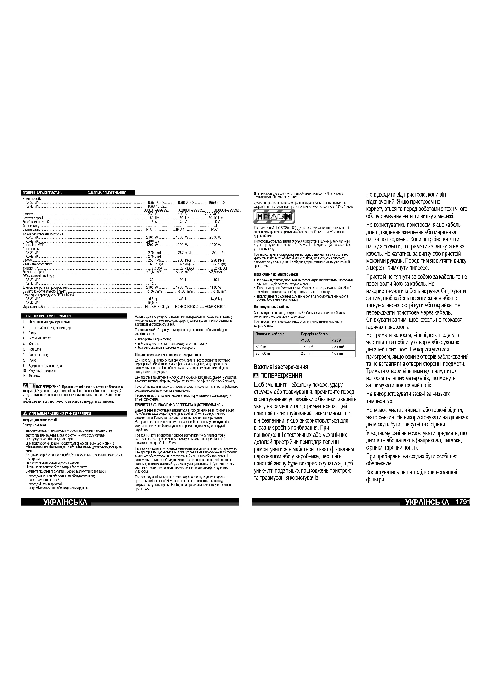 УВАГА! ПОПЕРЕДЖЕННЯ! НЕБЕЗПЕЧНО! Перед будь-якими роботами на машині витягнути штекер із штепсельної розетки. Уважно прочитайте інструкцію з експлуатації перед введенням приладу в дію. Не утилізуйте відпрацьоване електричне та електронне обладнання разом з побутовими