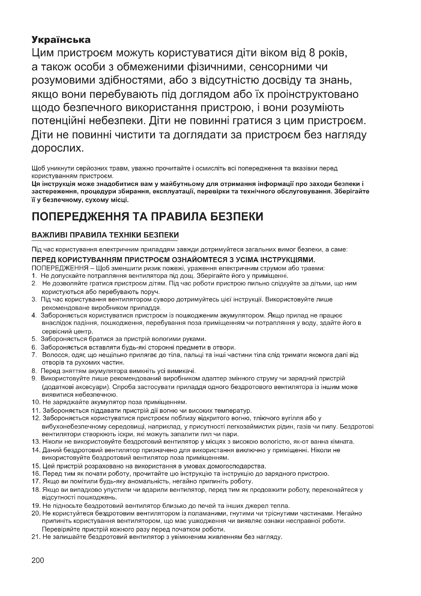 21. Не залишайте бездротовий вентилятор з увімкненим живленням без нагляду.201