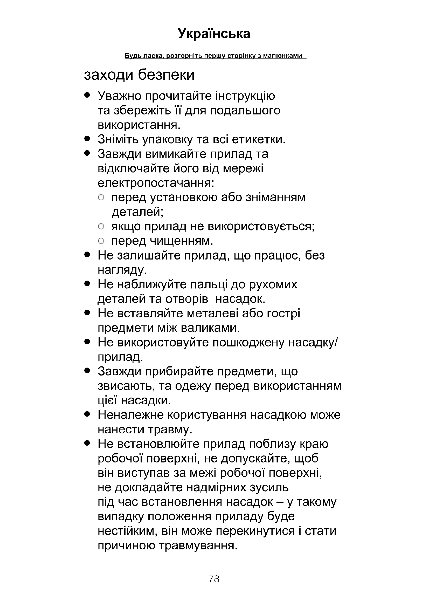 Завжди прибирайте предмети, що звисають, та одежу перед використанням цієї насадки.
