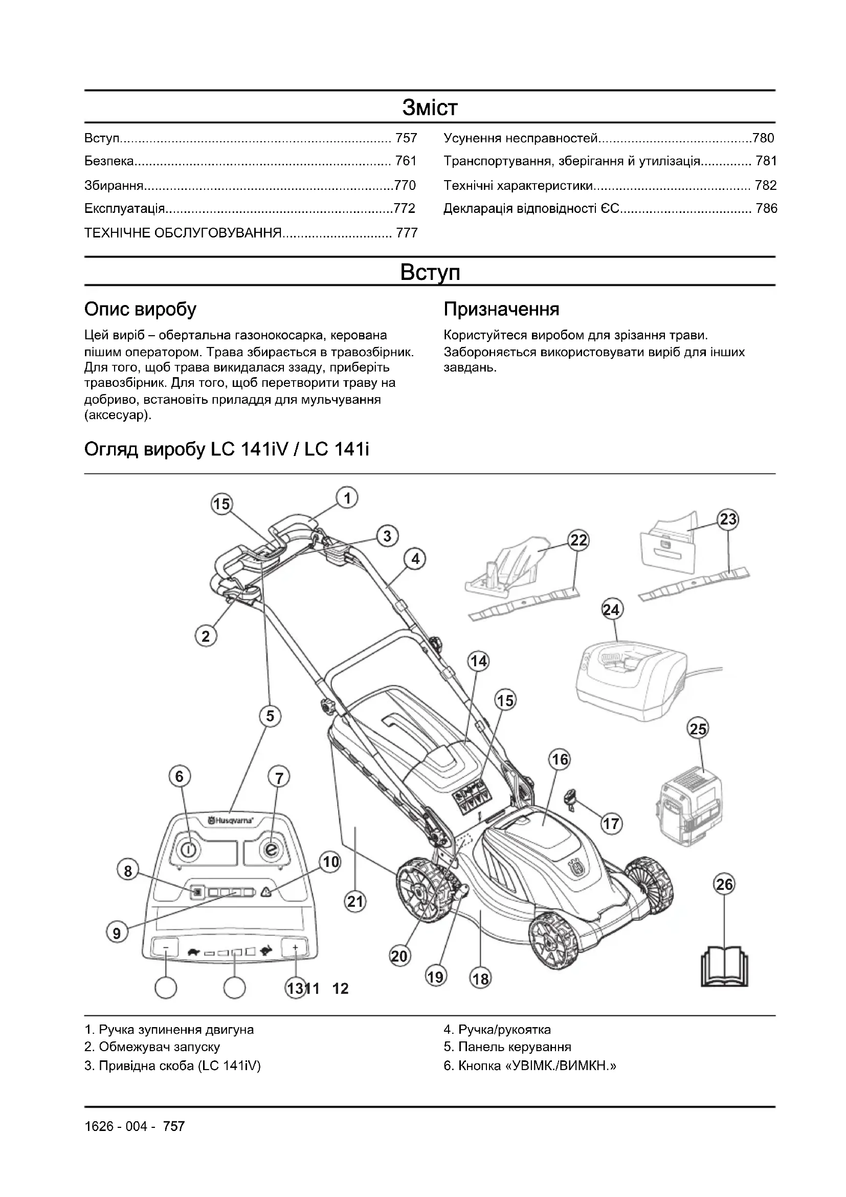 ПОСІБНИК КОРИСТУВАЧА LC 141iV HUSQVARNA