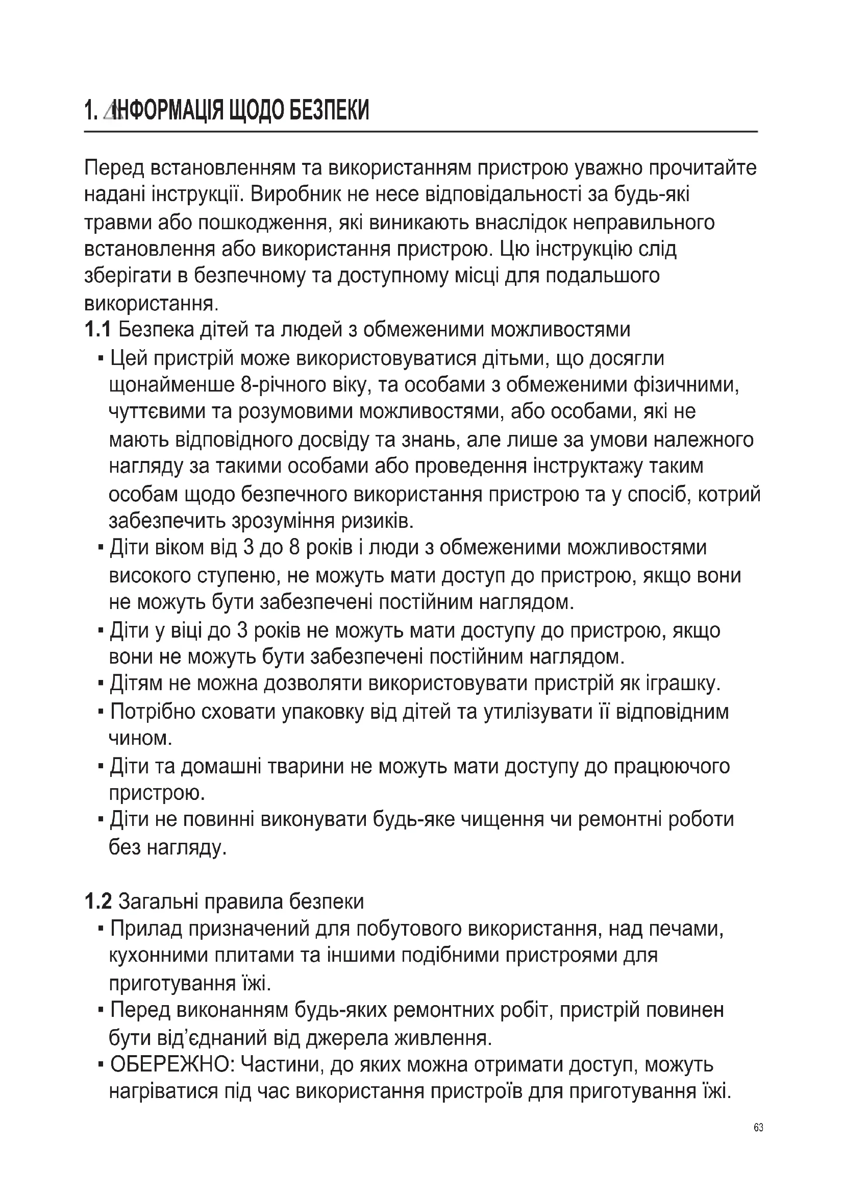 1. ІНФОРМАЦІЯ ЩОДО БЕЗПЕКИ