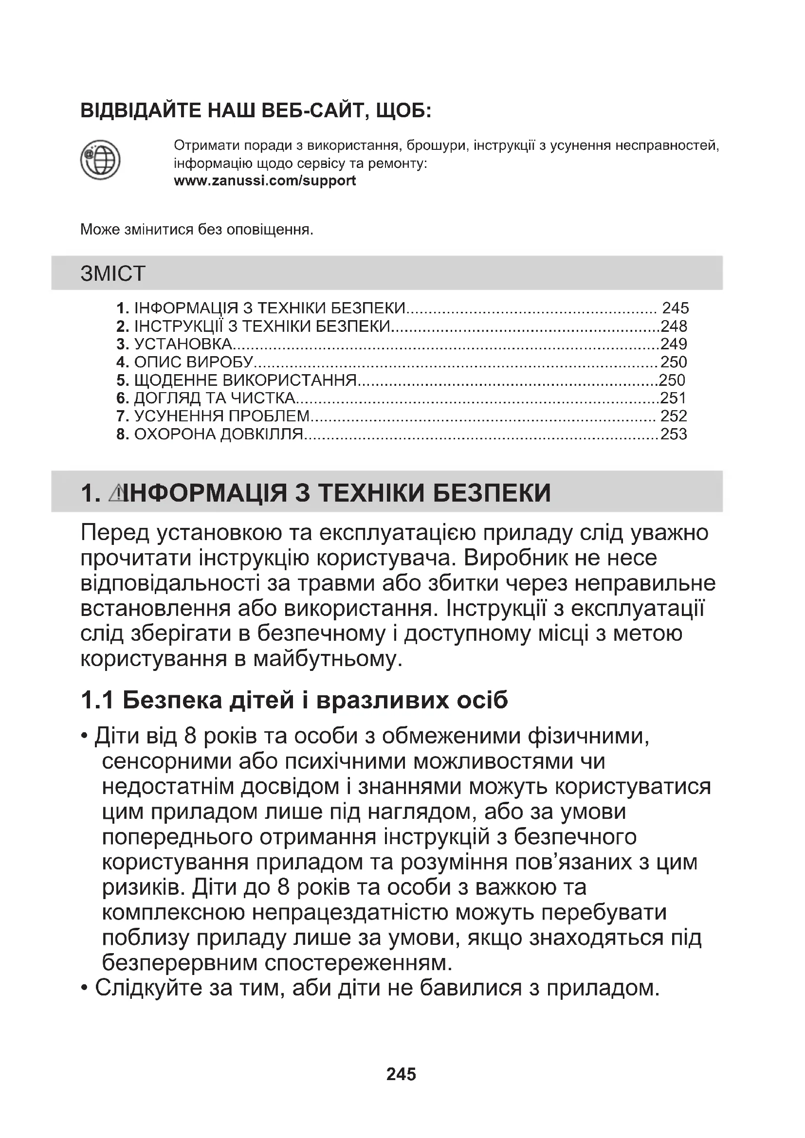 - Слідкуйте за тим, аби діти не бавилися з приладом. 245• Тримайте усі пакувальні матеріали подалі від дітей та утилізуйте їх належним чином.