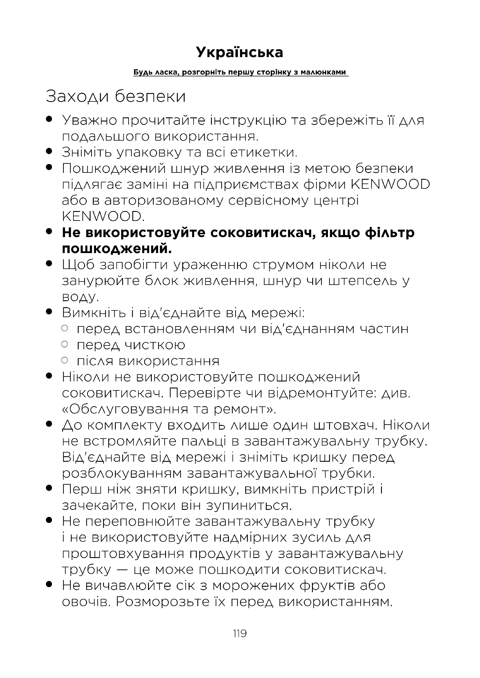 При виникненні несправності в роботі приладу Kenwood або при виявленні будь-яких дефектів, будь ласка, надішліть або принесіть прилад в авторизований сервісний центр KENWOOD. Актуальні контактні дані сервісних центрів KENWOOD ви знайдете на сайті www.kenwoodworld.com або на сайті для вашої країни.