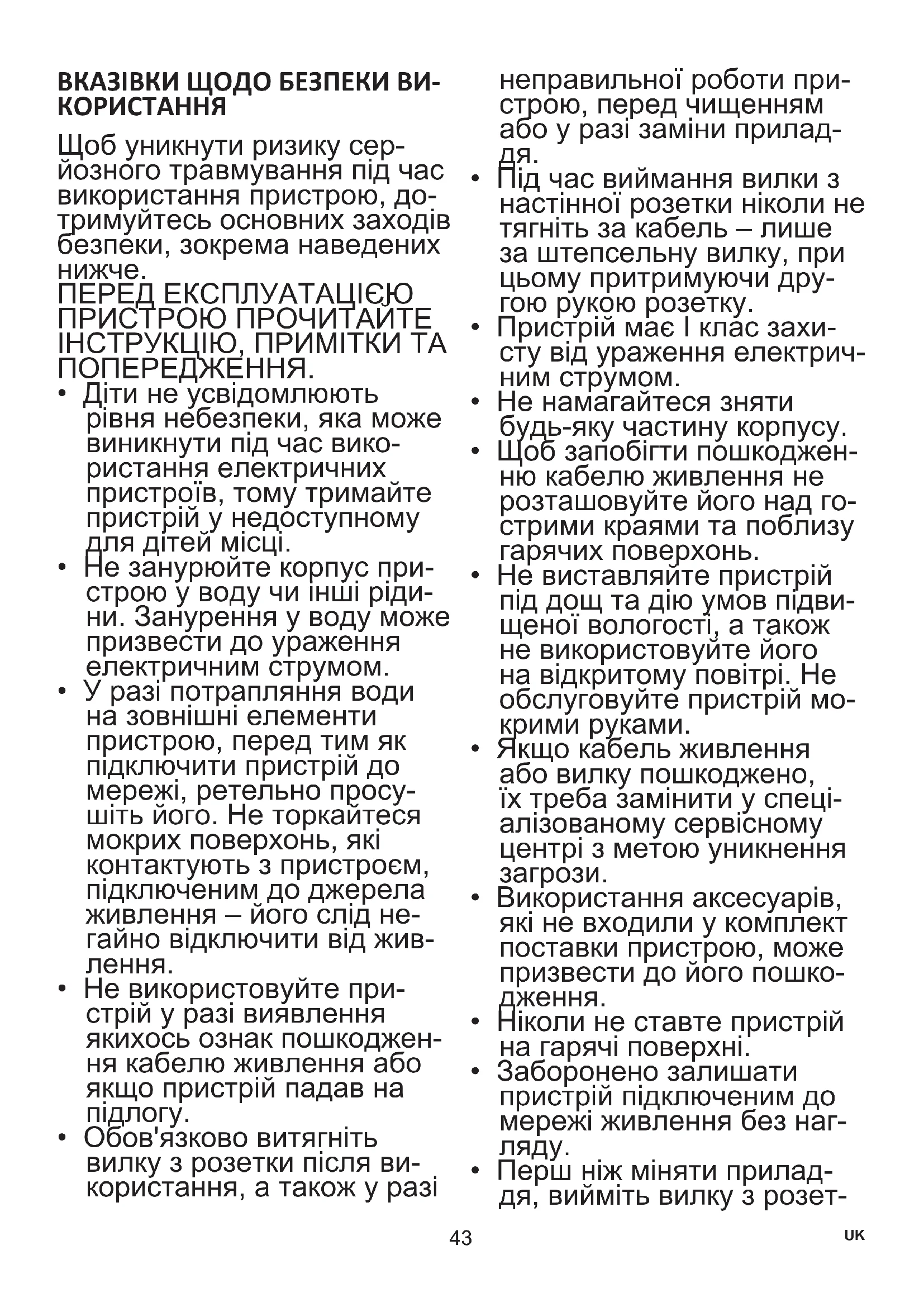 UK ІНСТРУКЦІЯ З ОБСЛУГОВУВАННЯ 43