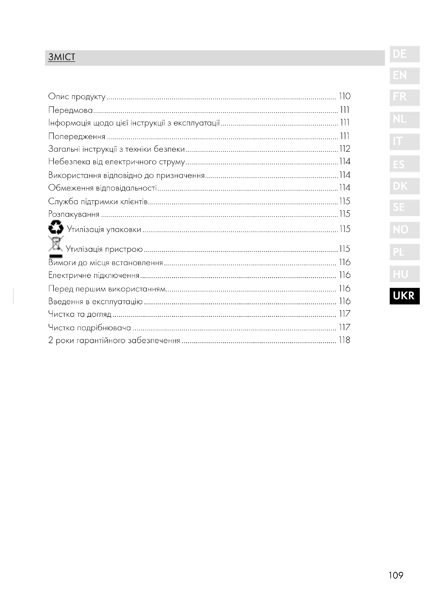 - Утилізація упаковки p. 115