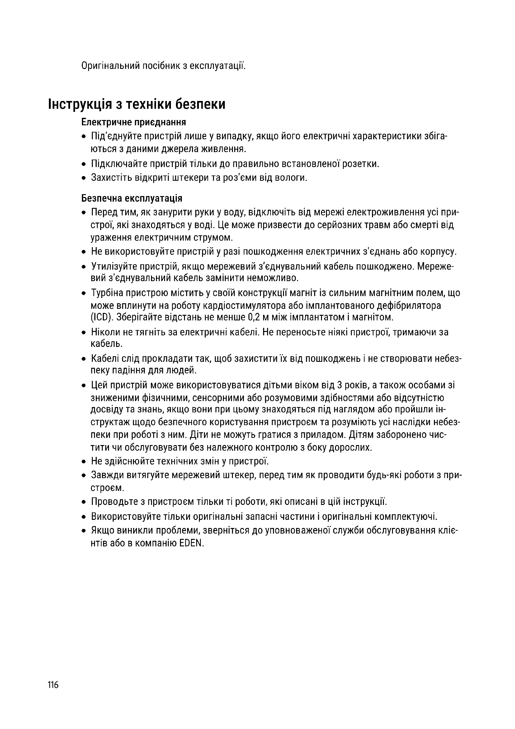 - Якщо виникли проблеми, зверніться до уповноваженої служби обслуговування кліє- нтів або в компанію EDEN.DE