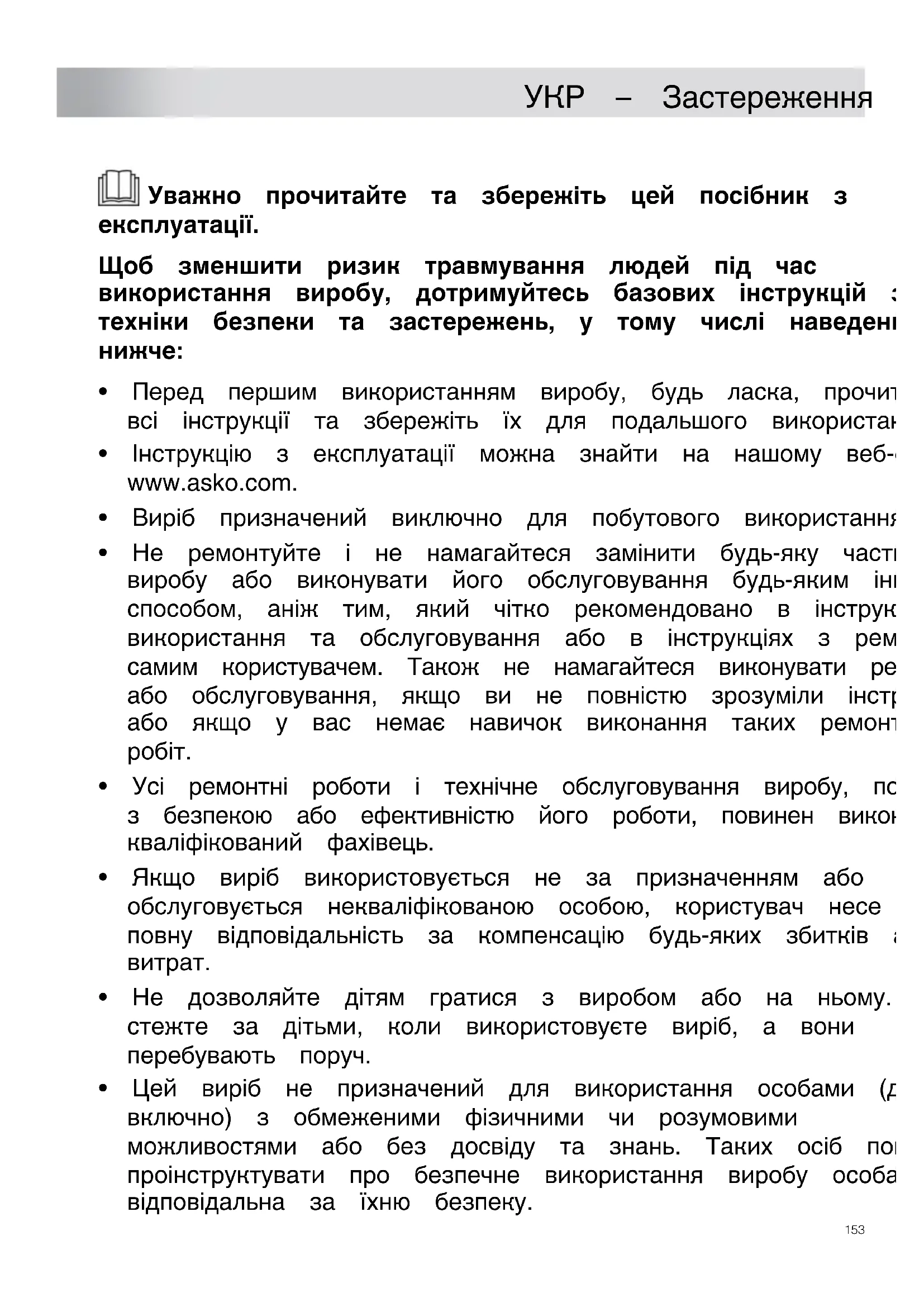 ПОСІБНИК КОРИСТУВАЧА HI150W ASKO