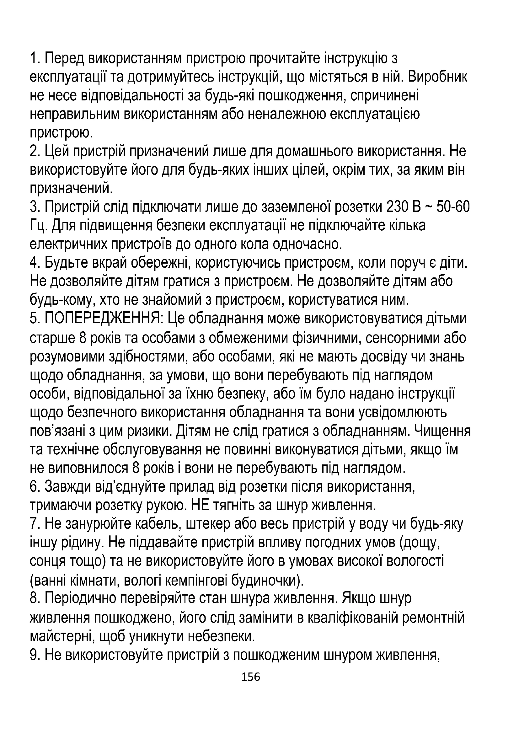 9. Не використовуйте пристрій з пошкодженим шнуром живлення,157