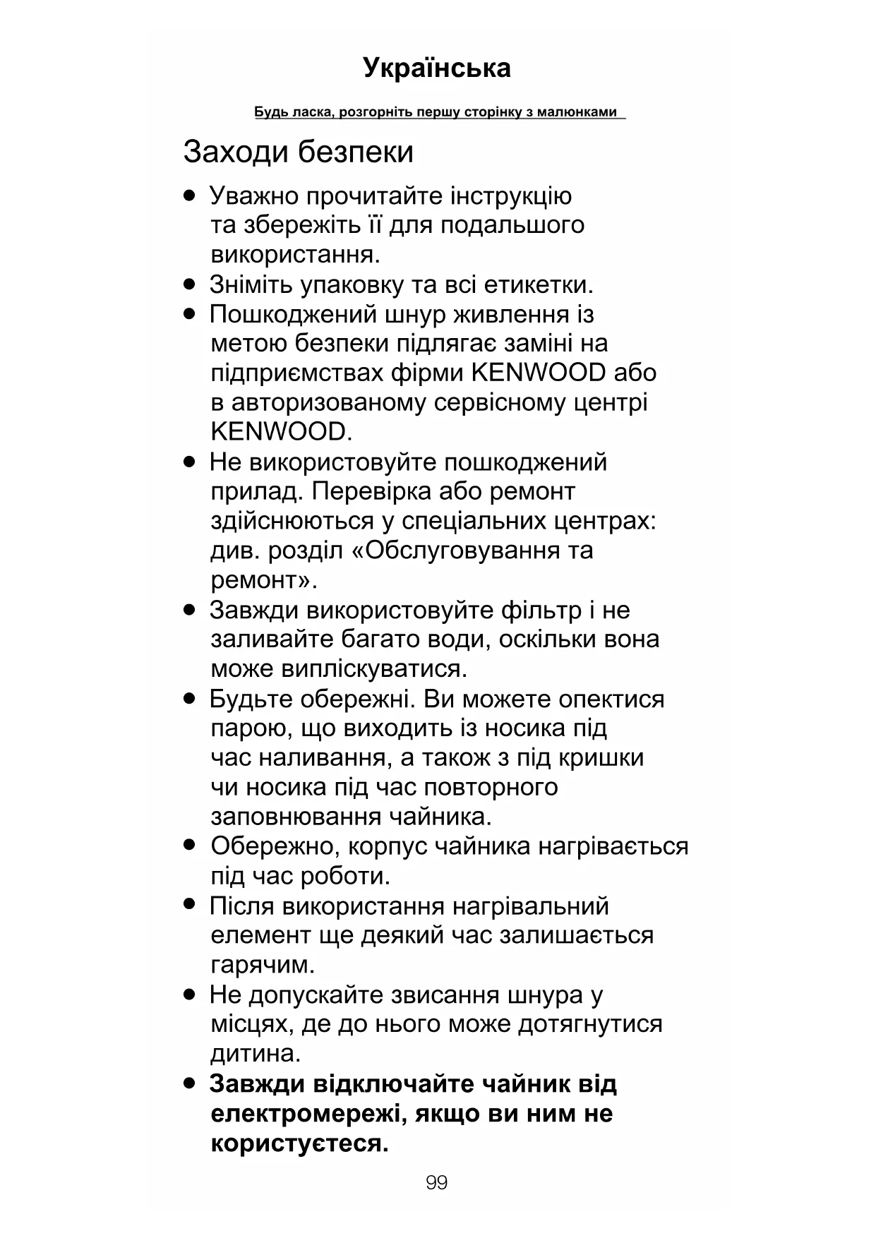 виникнення проблем із увімкненням та вимкненням чайника, а також із вимкненням приладу до закипання води.103 104 English