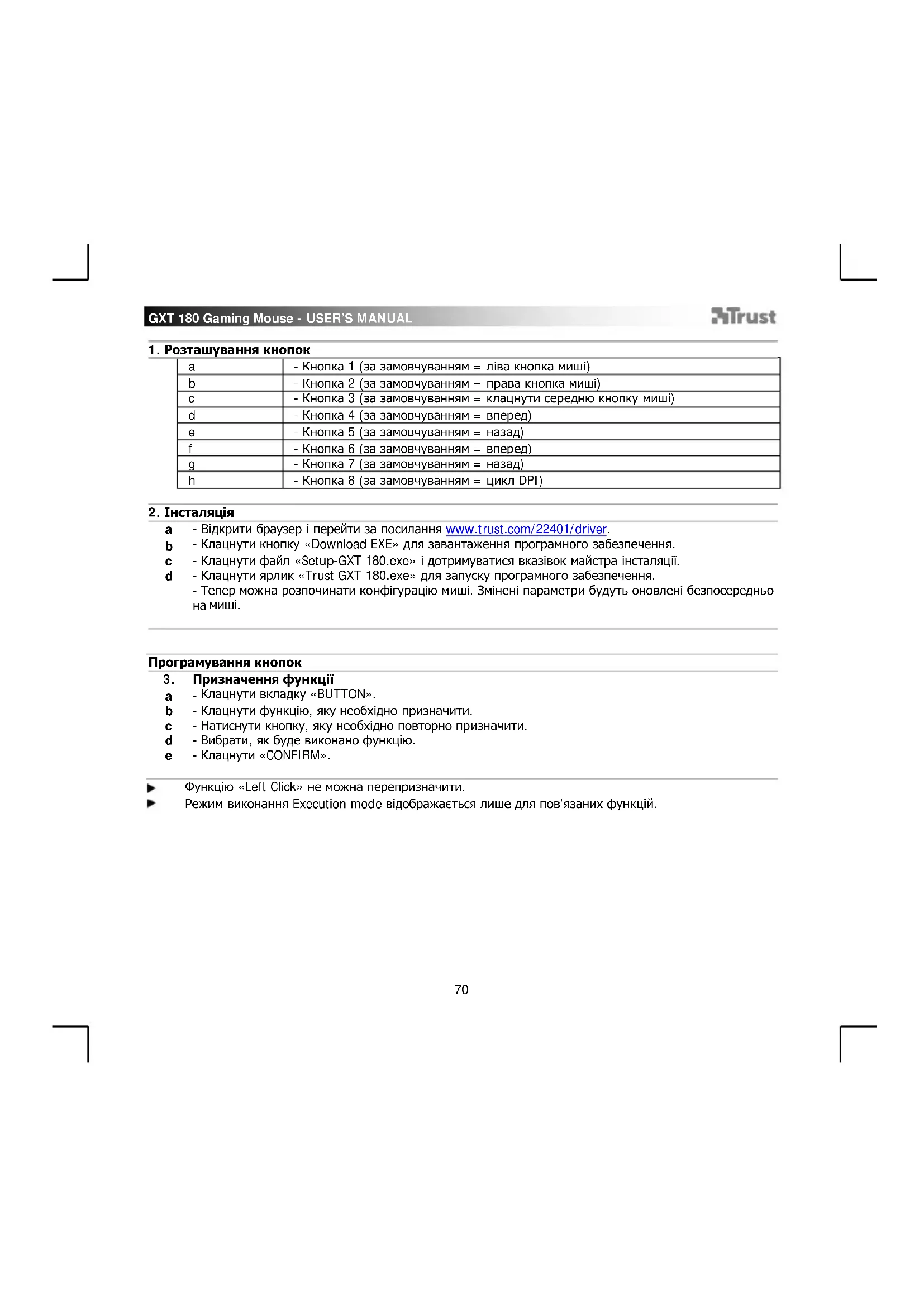 Kusan GXT 180 - миша TRUST - Безкоштовний посібник користувача